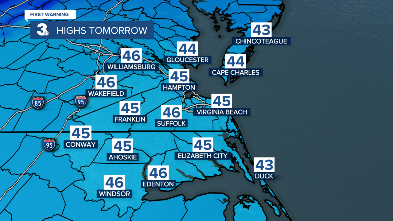 Get ready to go from falling rain to falling temperatures, as a cold front moves in behind our coastal storm.