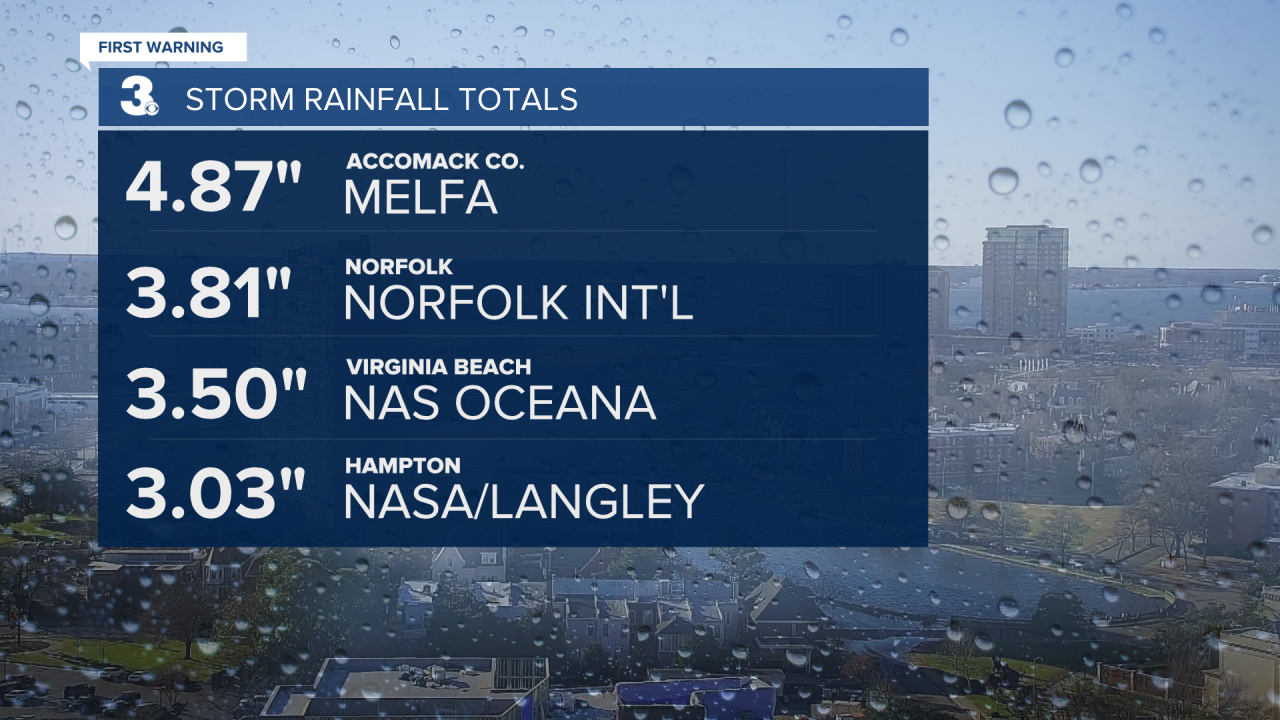 Sunday's storm system brought a drought-busting 3-5 inches of rain in most areas. With the highest totals on the Virginia Eastern Shore.