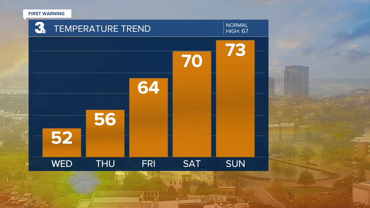 Our winds will shift to the south and west, sending temperatures much higher for the weekend.