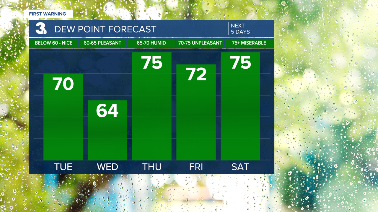 You may not notice a huge difference when you step out the door on Tuesday morning, but the drier air should move in by Tuesday afternoon and you’ll really feel the difference on Wednesday.