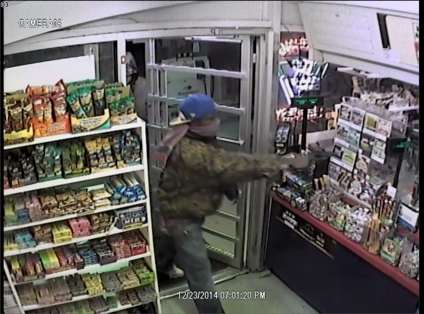 They say the two men came in with a gun and demanded money.