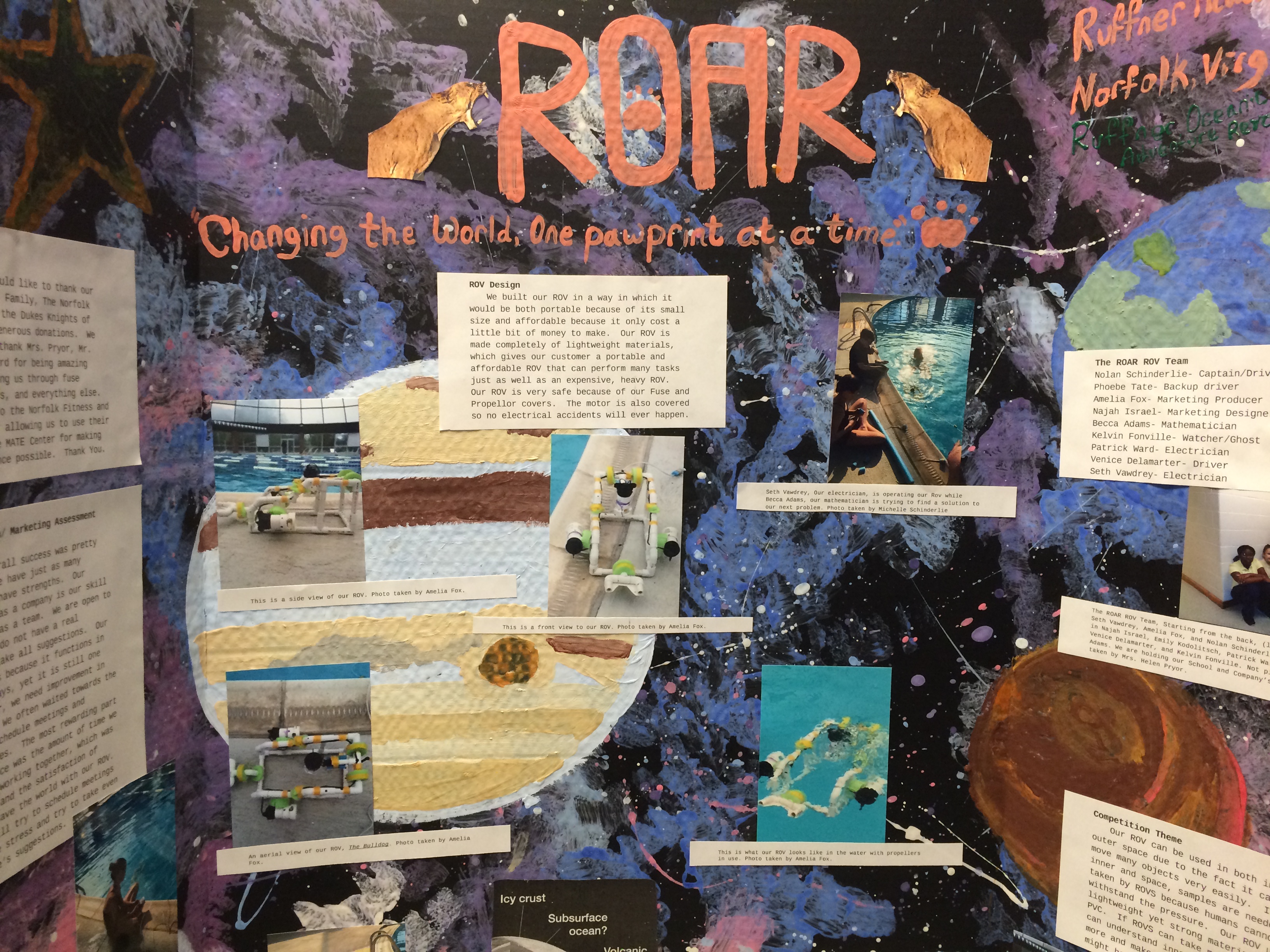 The theme this year was "From the Gulf of Mexico to Jupiter's Moon Europa: ROV Encounters in Inner and Outer Space." Students from elementary to high school worked in teams designing remote controlled vehicles (ROVs).