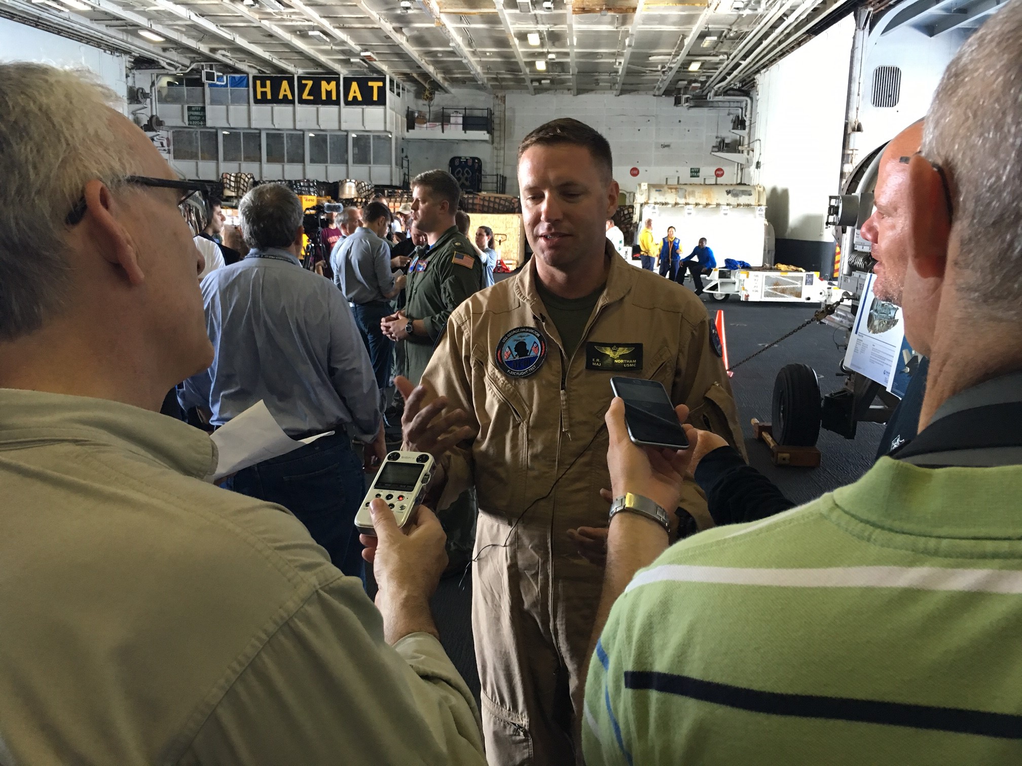 Commander ted “dutch” dyckman, test pilot, vx-23 - 14;01;11;27 – “It is like moving from an old flip phone to a smart phone, in terms of airplanes,” Cdr. Ted “Dutch” Dyckman told News 3’s Merris Badcock from the U.S.S. George Washington where the final test phase for the F-35C is taking place.