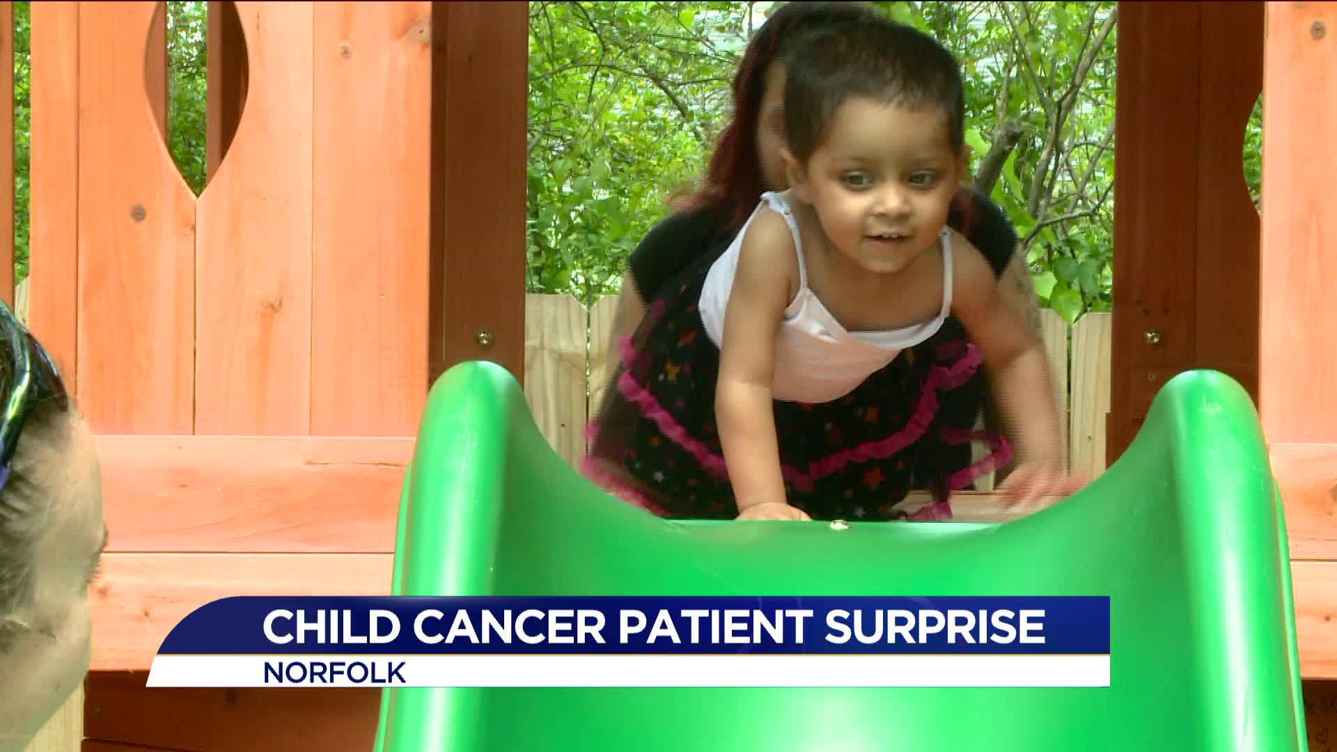 Skye Askew's days are usually filled with different types of treatments, like chemotherapy sessions and doctor's appointments. On Saturday however, Skye's day was filled with a different surprise: a new playground just for her, in her own backyard.