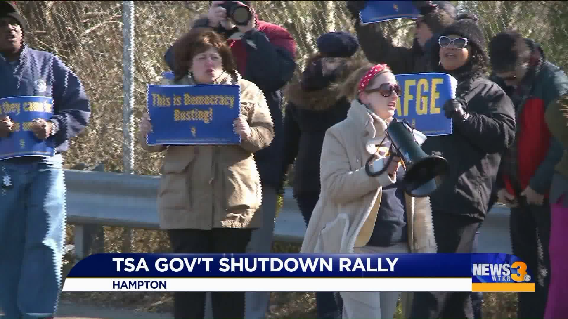She joined with dozens of others from the American Federation of Government Employees to hold a rally outside of the Hampton VA Medical Center calling for the shutdown to end.