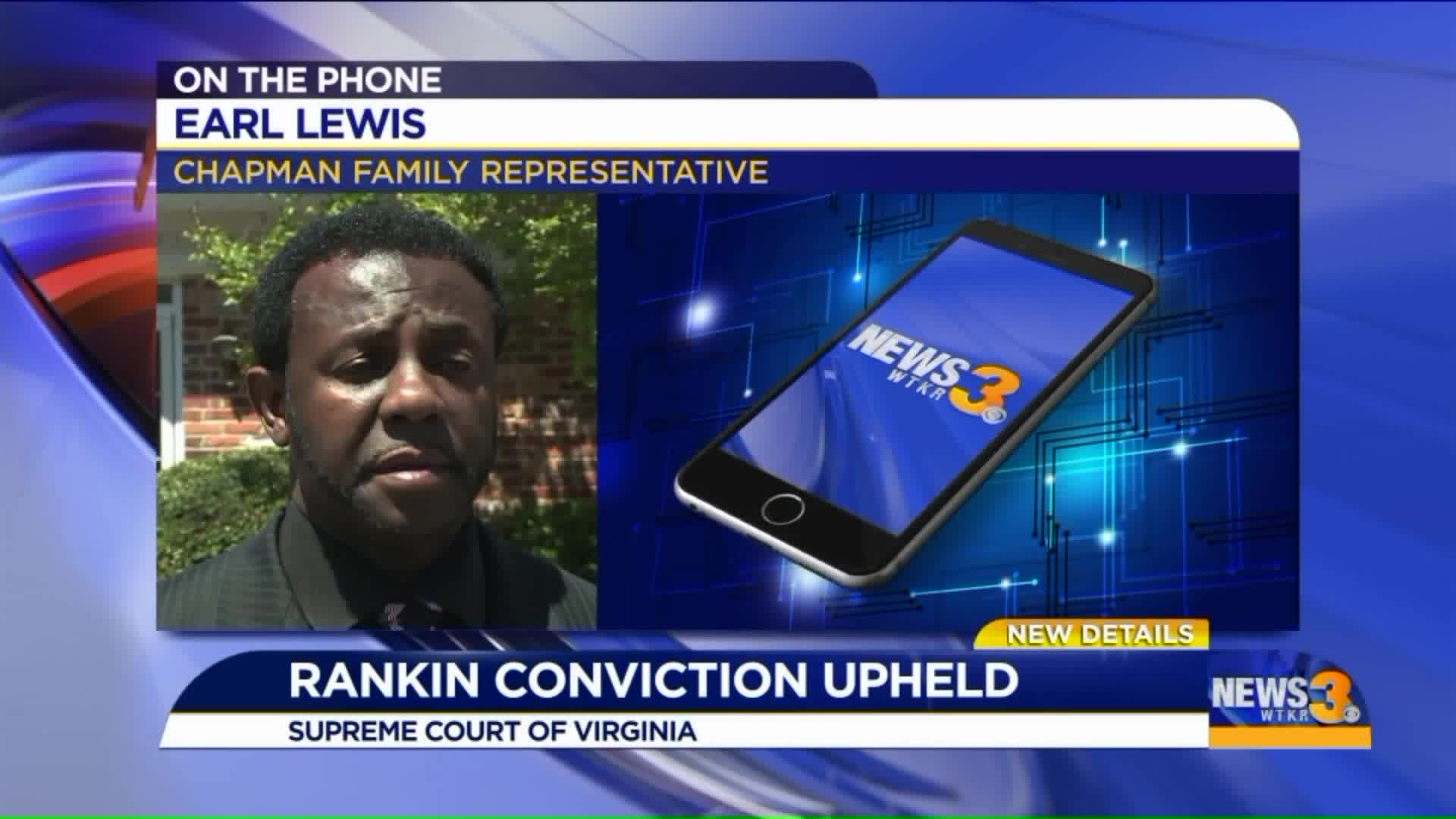 "As far as the William Chapman family and Earl Lewis, we truly feel justice was served. Rankin has appealed a couple times, and the last time in Virginia Supreme Court - that was a big one because we didn’t know what was going to happen. But I am here to tell you that Virginia stepped up and has been a very vital part of justice being served from the lowest court to the highest court. With that being said, the family still lost William Chapman. The hurt will always be there. On the day Rankin was convicted, William Chapman's grandma died; that part of our life will never go away.