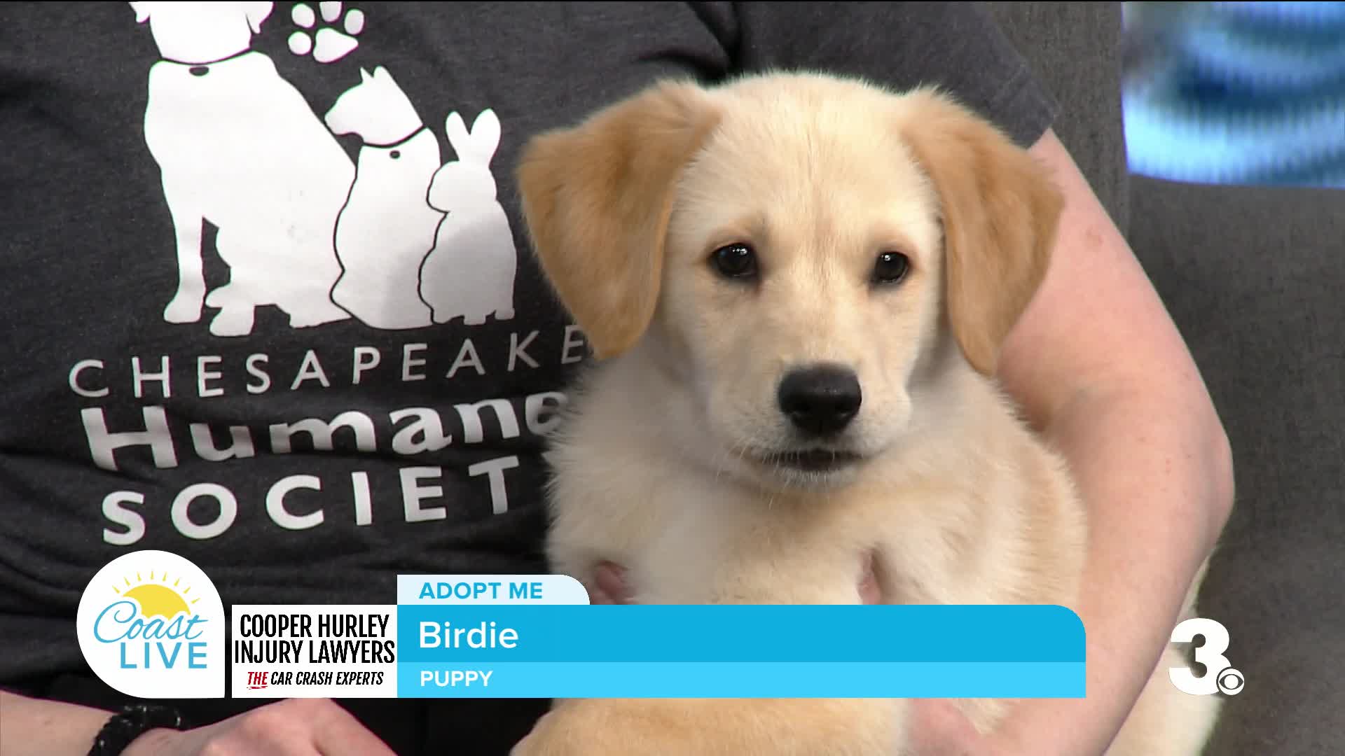 HAMPTON ROADS, Va. — Tracy Magro joins Coast Live with adoptable puppy Birdie from Chesapeake Humane Society to showcase some animals available for adoption at the shelter.