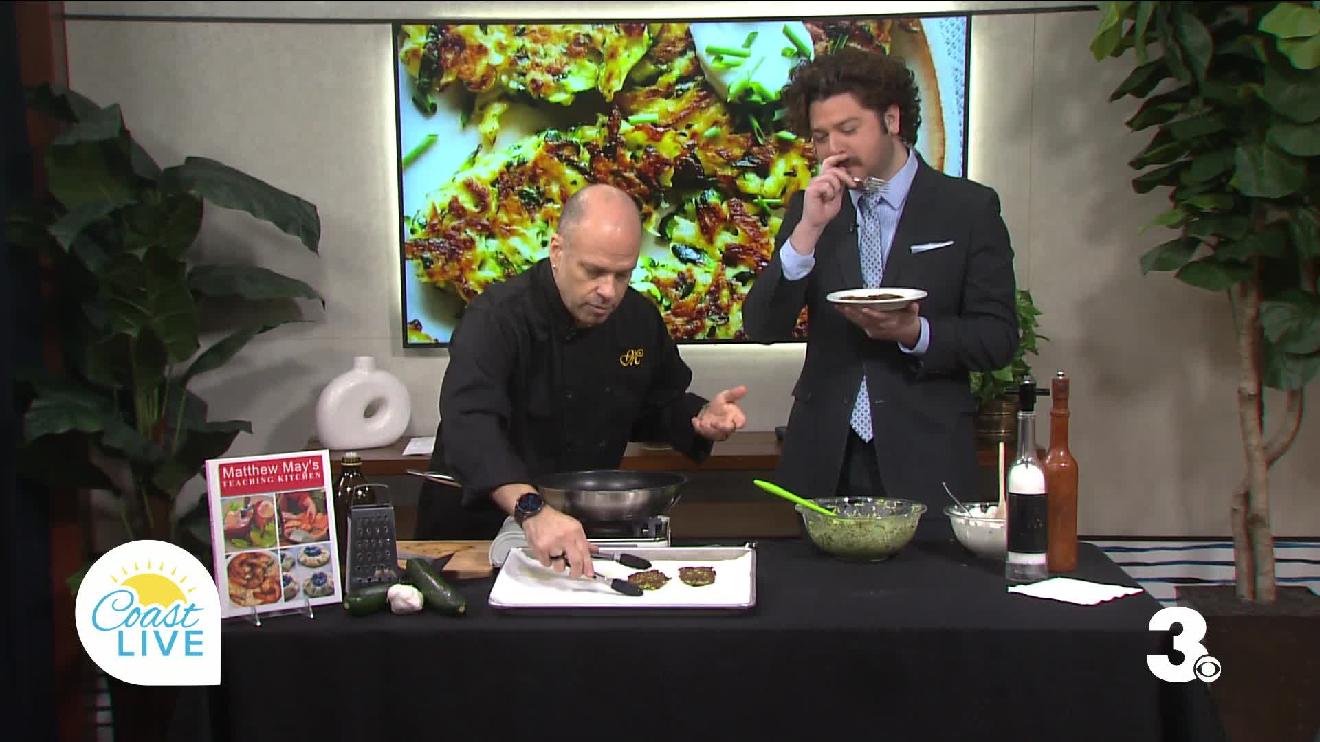 HAMPTON ROADS, Va. — Chef Matthew May from Matthew May’s Teaching Kitchen in Virginia Beach joins Coast Live to share a brand new recipe: zucchini fritters with a mint yogurt sauce.