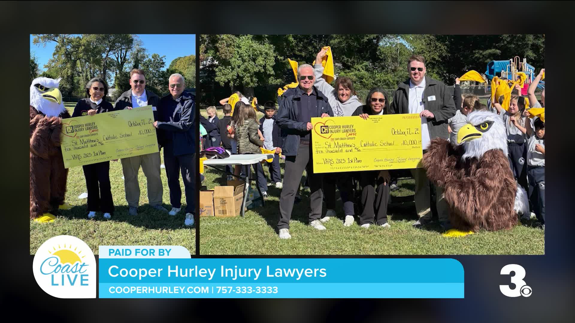HAMPTON ROADS, Va. — Attorney Griffin O'Hanlon and St. Matthews Catholic School Principal Louis L. Goldberg discuss the significant impact the $10,000 "Vote for a School" grand prize will have for students, after winning Cooper Hurley's contest by drumming up online support from the community.