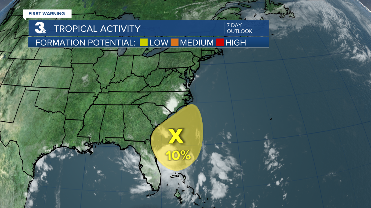 A broad area of low pressure located a few hundred miles off the southeastern U.S. coast continues to produce disorganized showers and thunderstorms. Regardless of development, heavy rainfall will be possible for parts of the Carolina coast late this week and into the weekend.