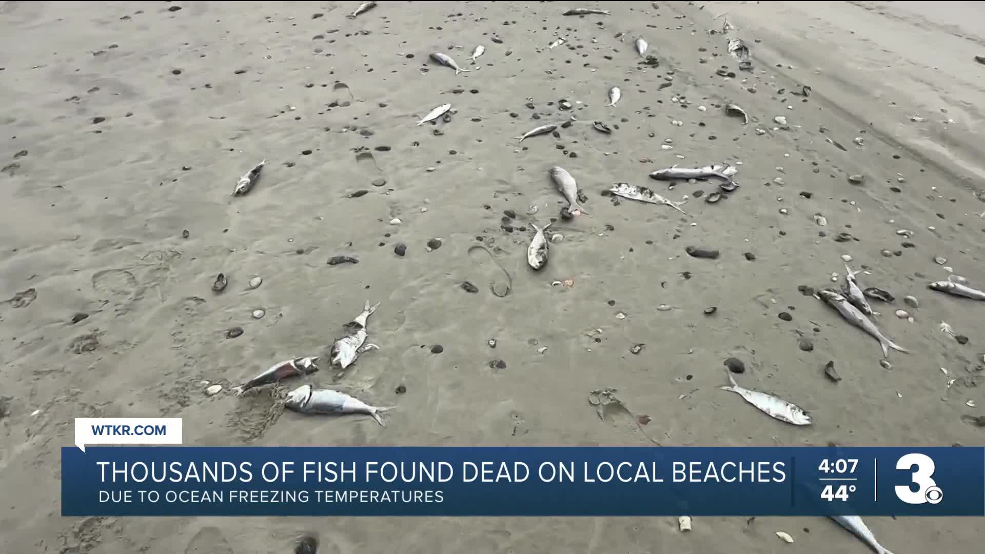 COROLLA, N.C. — Hundreds of dead fish are washing up along the shores of Virginia Beach and North Carolina's Outer Banks. News 3 is now learning from the Virginia Marine Resources Commission that this is because of an offshore cold stun event.