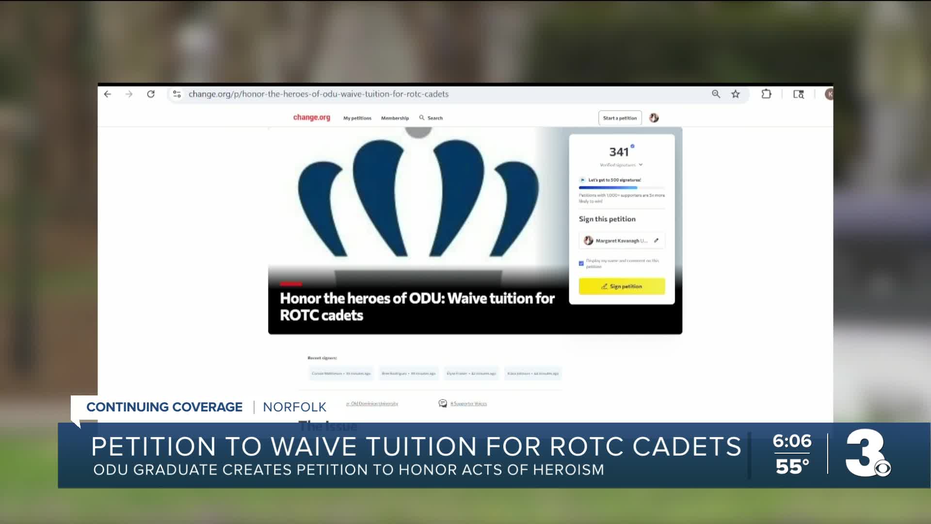 An Old Dominion University graduate has created a Change.org petition calling for the university to waive tuition fees for the ROTC cadets who stopped a campus shooter.