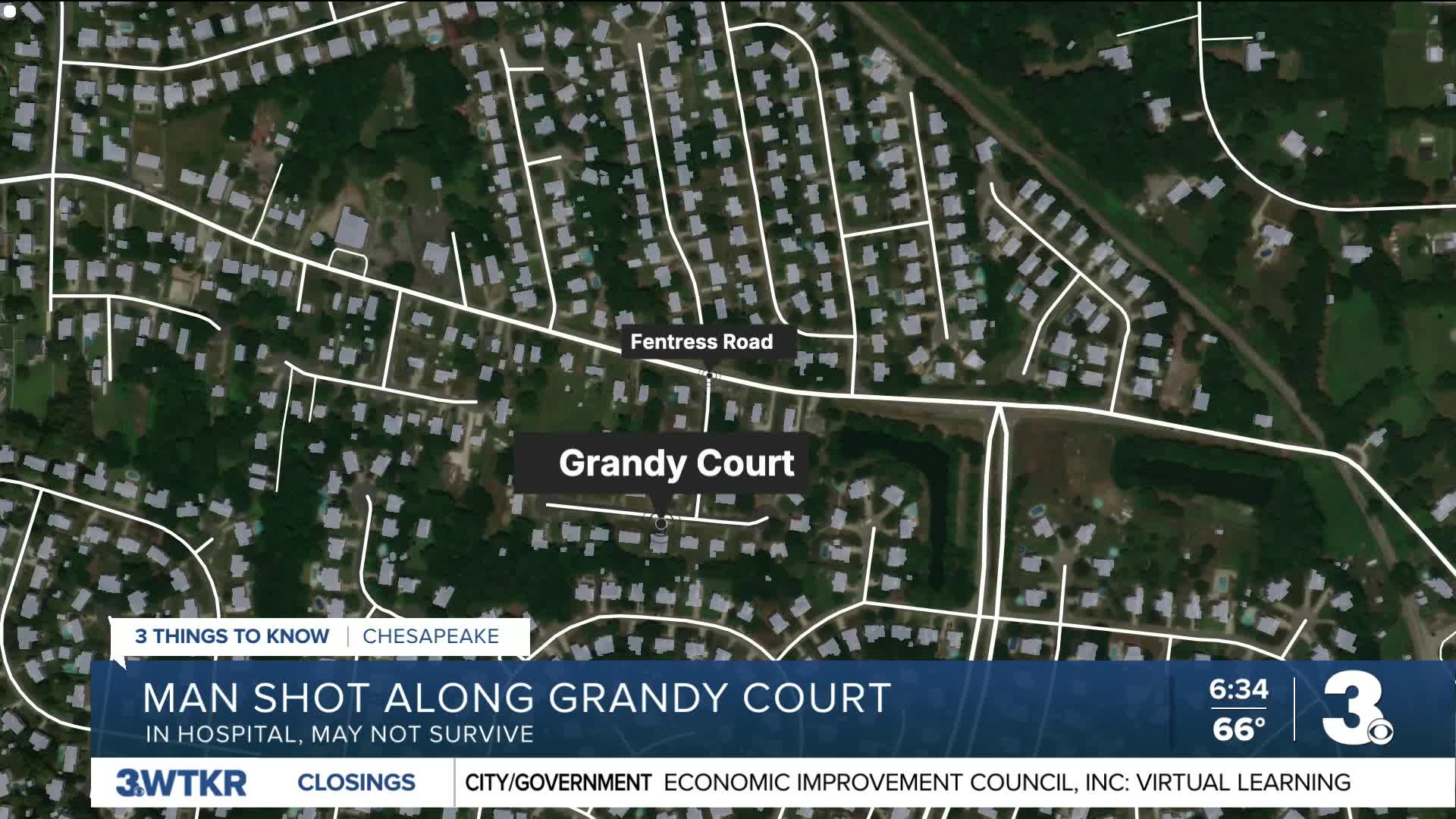 Chesapeake police responded to the 1100 block of Grandy Court around 10:50 a.m. on Sunday. They found a man on the front porch who had been shot multiple times. He was taken to the hospital where he had emergency surgery and was last reported to be in critical condition.