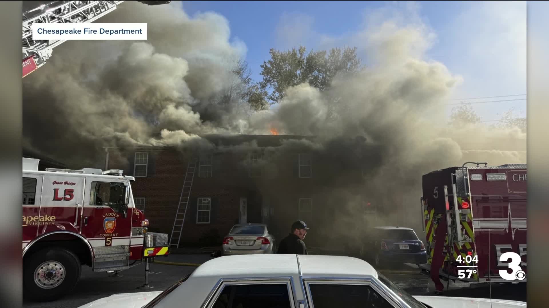 Emergency dispatchers received multiple 911 calls around 1:17 p.m. reporting a fire at the Great Bridge Apartments, officials said. Firefighters arrived three minutes later to find heavy smoke and flames coming from a two-story building.