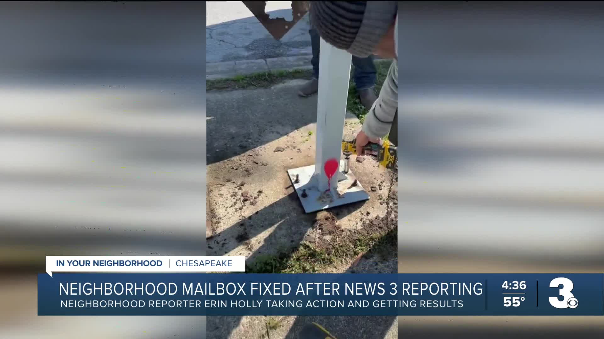 CHESAPEAKE, Va. — Neighbors in the Dominion Pines area of Chesapeake say postal workers told them they saw News 3's previous coverage regarding the damaged community mailbox on Cobblewood Arch and came out Friday to repair it.