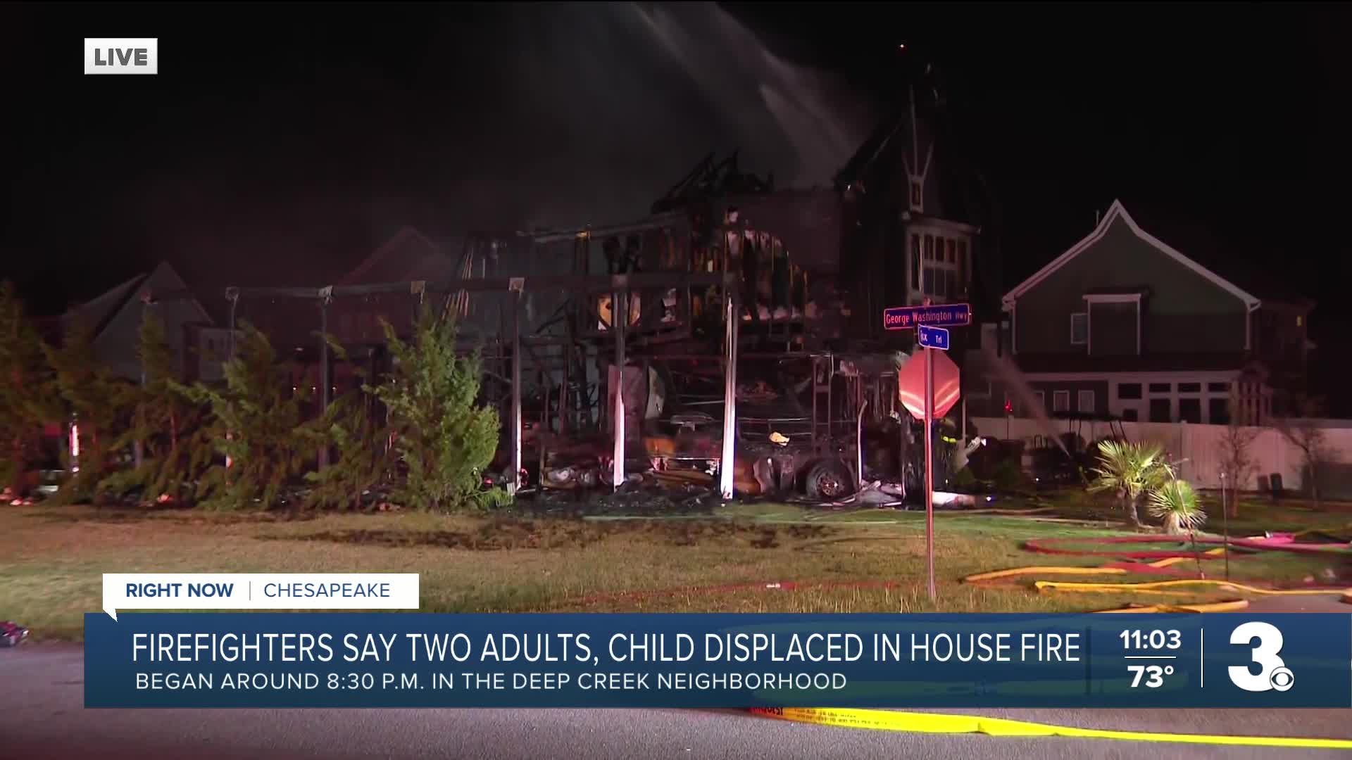 Firefighters were called around 8:35 p.m. to the 1000 block of Fox Trail after passing drivers reported an RV on fire next to a home, according to the Chesapeake Fire Department.