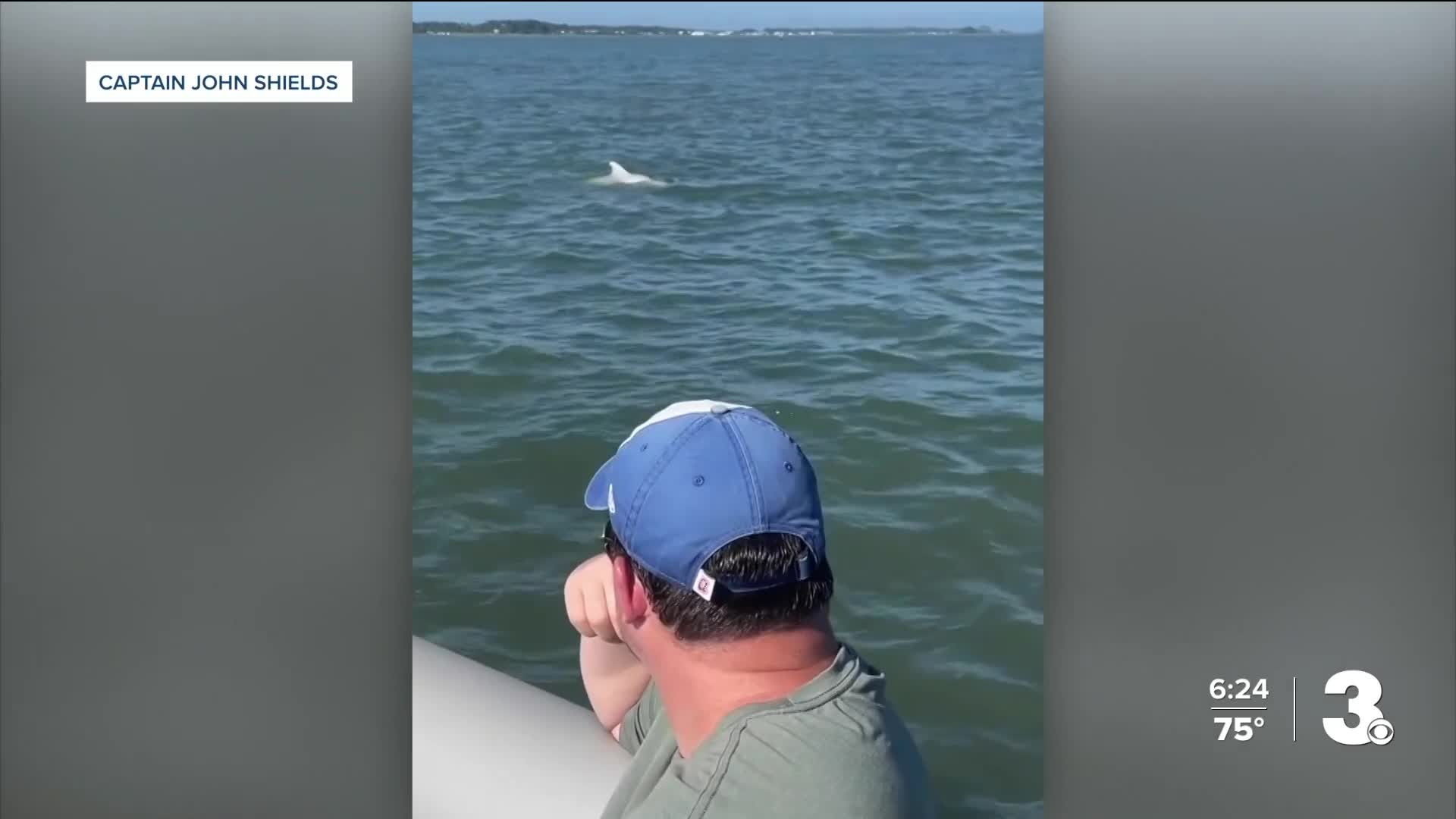 CHINCOTEAGUE, Va. — A rare albino dolphin was recently spotted by a tour group in Chincoteague and captured in a video shared with WTKR News 3.