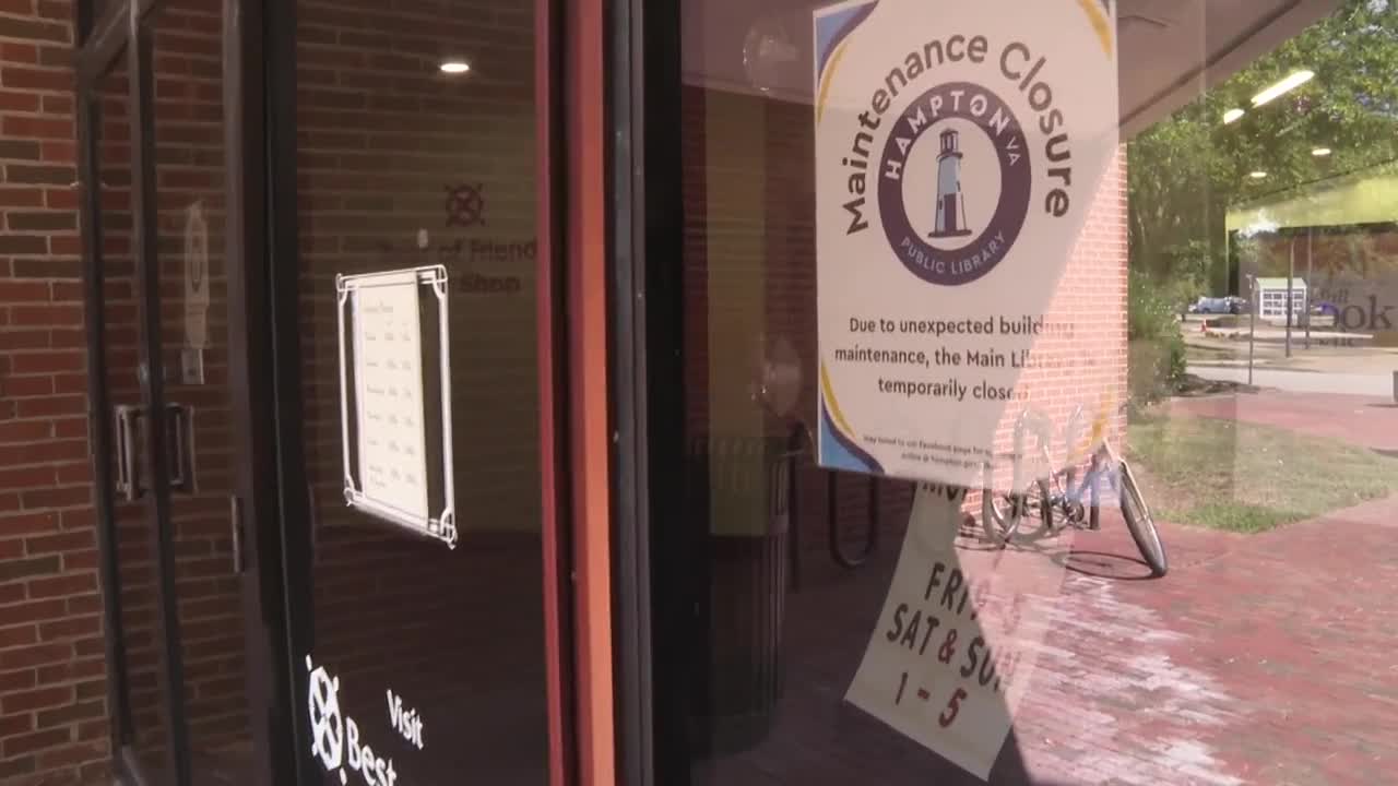 HAMPTON, Va. — Signs were posted on the doors of the main library branch in Hampton on Tuesday, letting people know the library was temporarily closed.