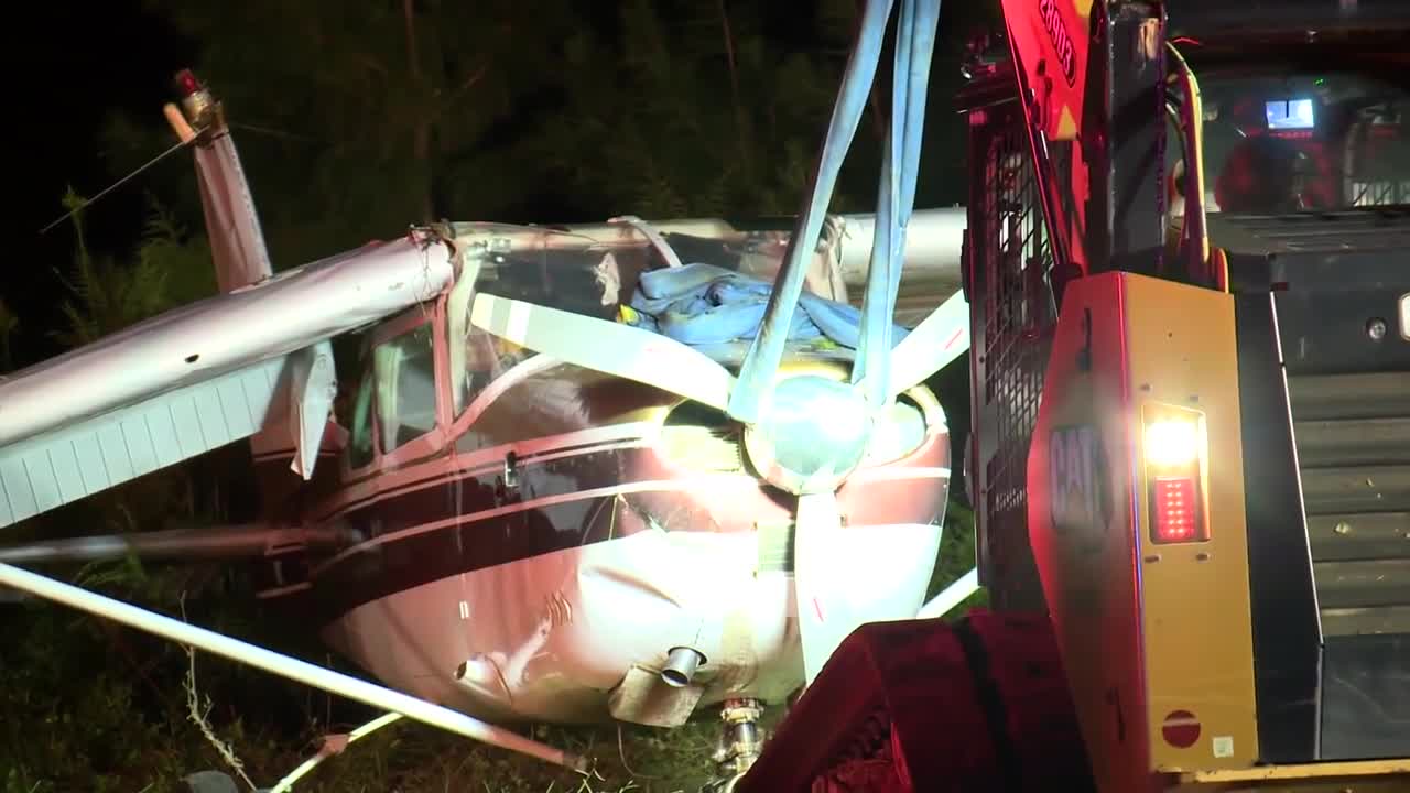 “I saw an ambulance earlier. They’re trying to figure out how to get into the trees and pull the plane out,” he said.