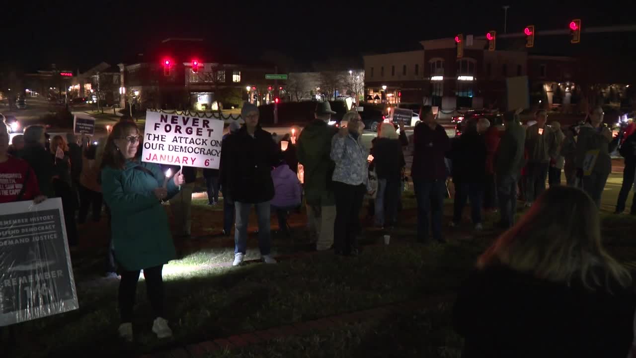 WILLIAMSBURG, Va. — About 100 neighbors gathered Tuesday night in Williamsburg for a candlelight vigil to mark five years since the January 6th attack on the nation's Capitol. The vigil was organized by Williamsburg JCC Indivisible, a local group that advocates for democracy, at the Williamsburg James City County Courthouse.