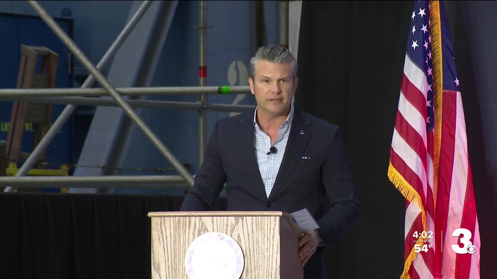 NEWPORT NEWS, Va. — Defense Secretary Pete Hegseth — dubbed "Secretary of War" by the Trump administration — visited Newport News Shipbuilding on Monday amid broader efforts to bolster American manufacturing for national security, according to HII, the shipyard's parent company.