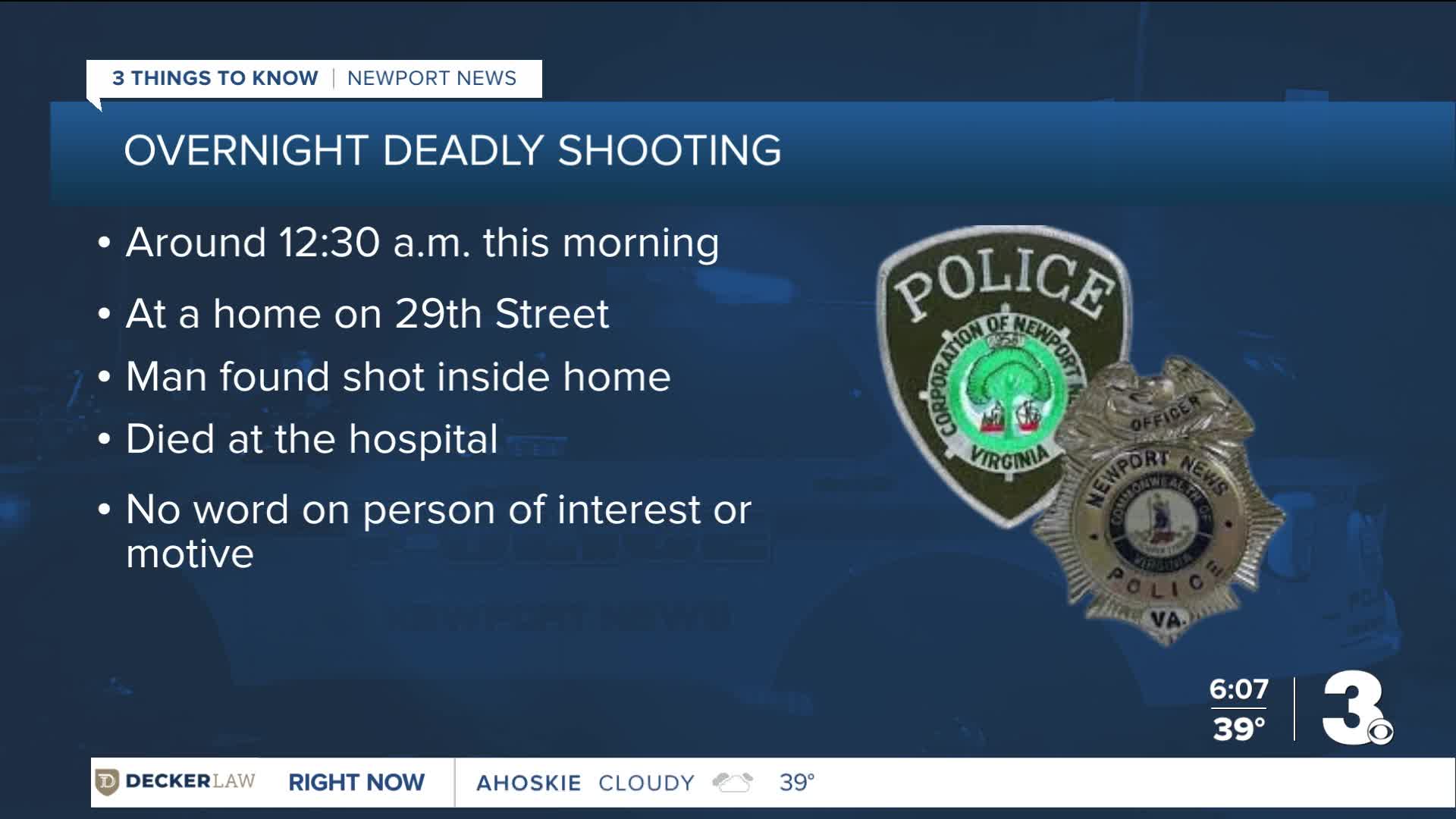 Police responded to the 1200 block of 29th Street around 12:36 a.m. When they arrived, they found a man shot inside a residence. Jasiah Smith of Newport News later died at the hospital, according to NNPD.
