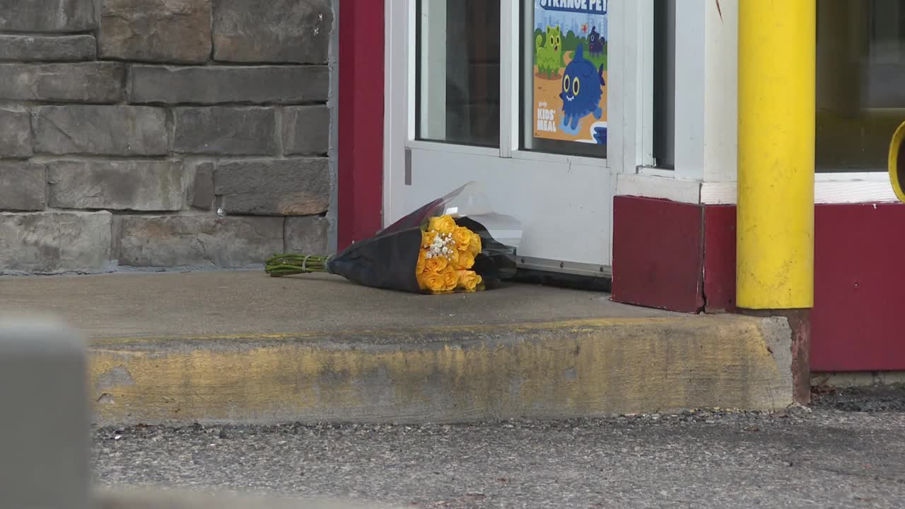 Mid-morning Wednesday, a bouquet of flowers was on the ground in front of one of the doors of the Wendy’s.