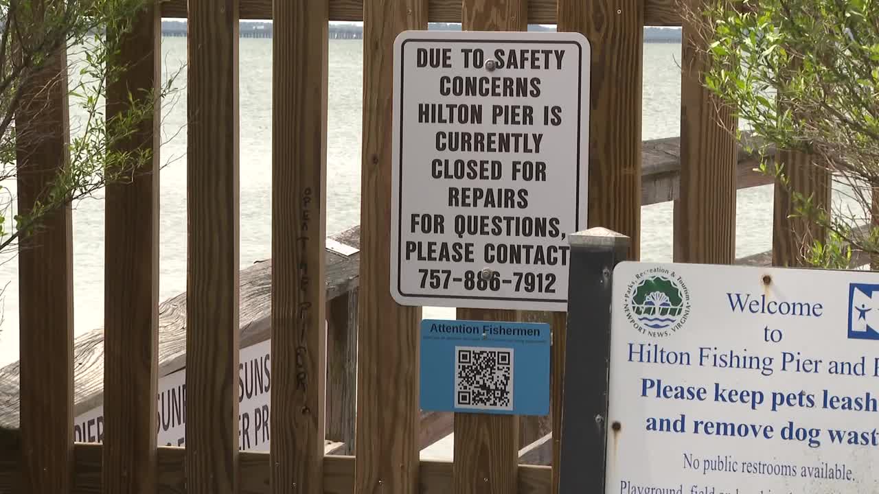NEWPORT NEWS, Va. — The Hilton Fishing Pier and the fishing pier at Monitor Merrimac Overlook Park in Newport News will remain closed as city leaders plan for full replacements.