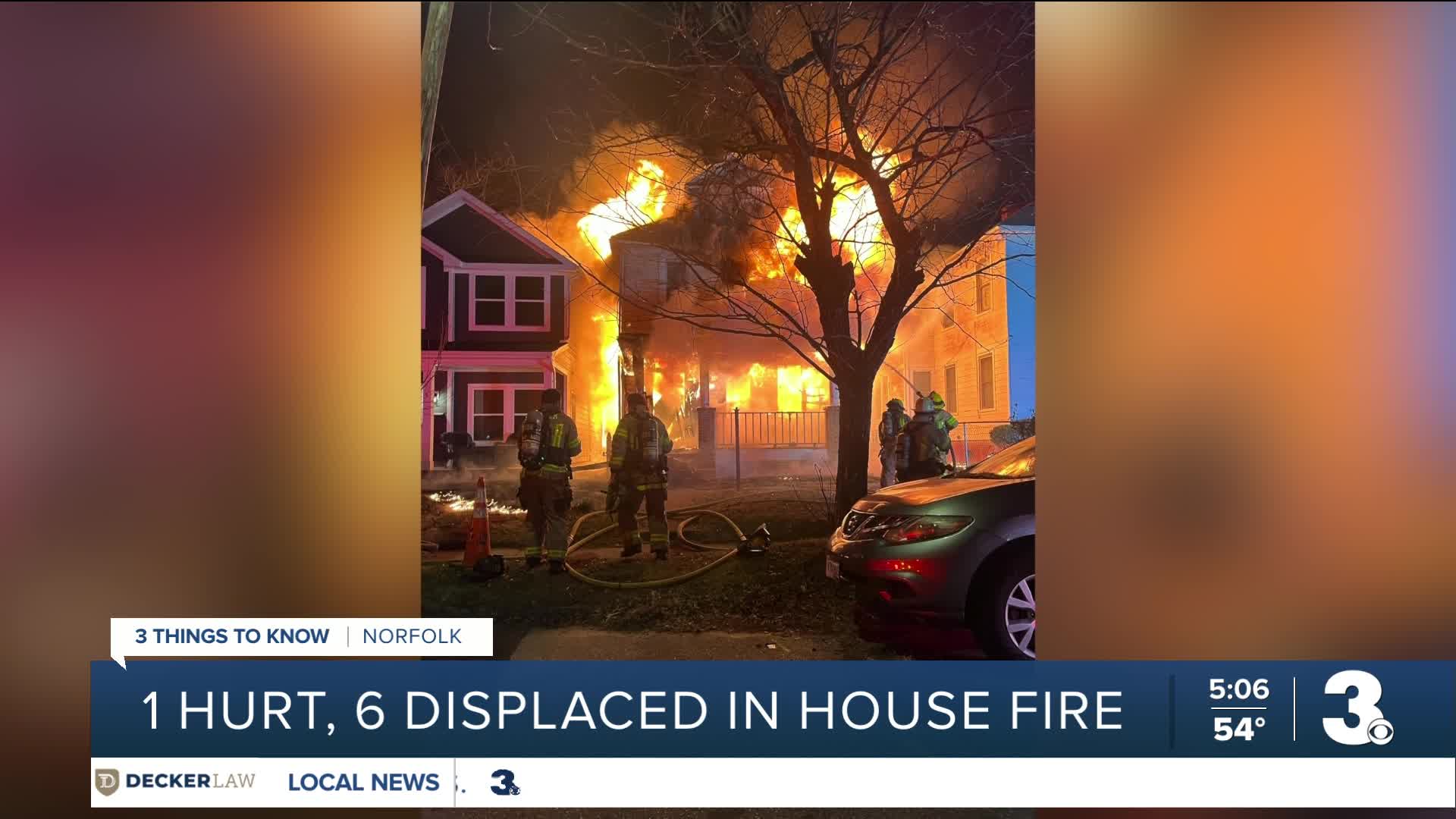 One person was taken to Sentara Norfolk General Hospital for smoke inhalation and minor burns. In total, six people have been displaced and Norfolk Fire-Rescue says the American Red Cross was called to help.