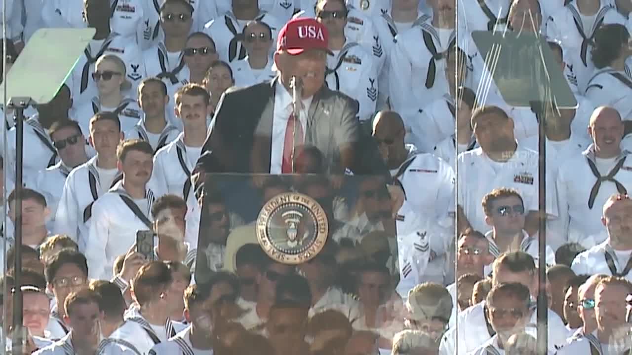 NORFOLK, Va. — President Donald Trump celebrated the Navy's 250th birthday at Naval Station Norfolk Sunday afternoon, touting its strength and perseverance in a 45-minute speech to sailors, leaders, and veterans.