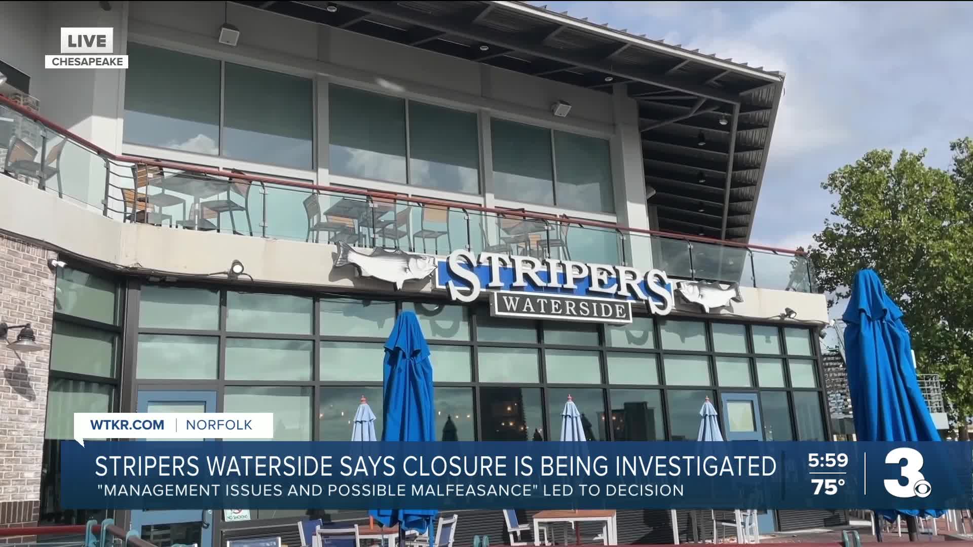 NORFOLK, Va. — The company that owns Stripers Waterside is addressing the news about its abrupt closure this week.