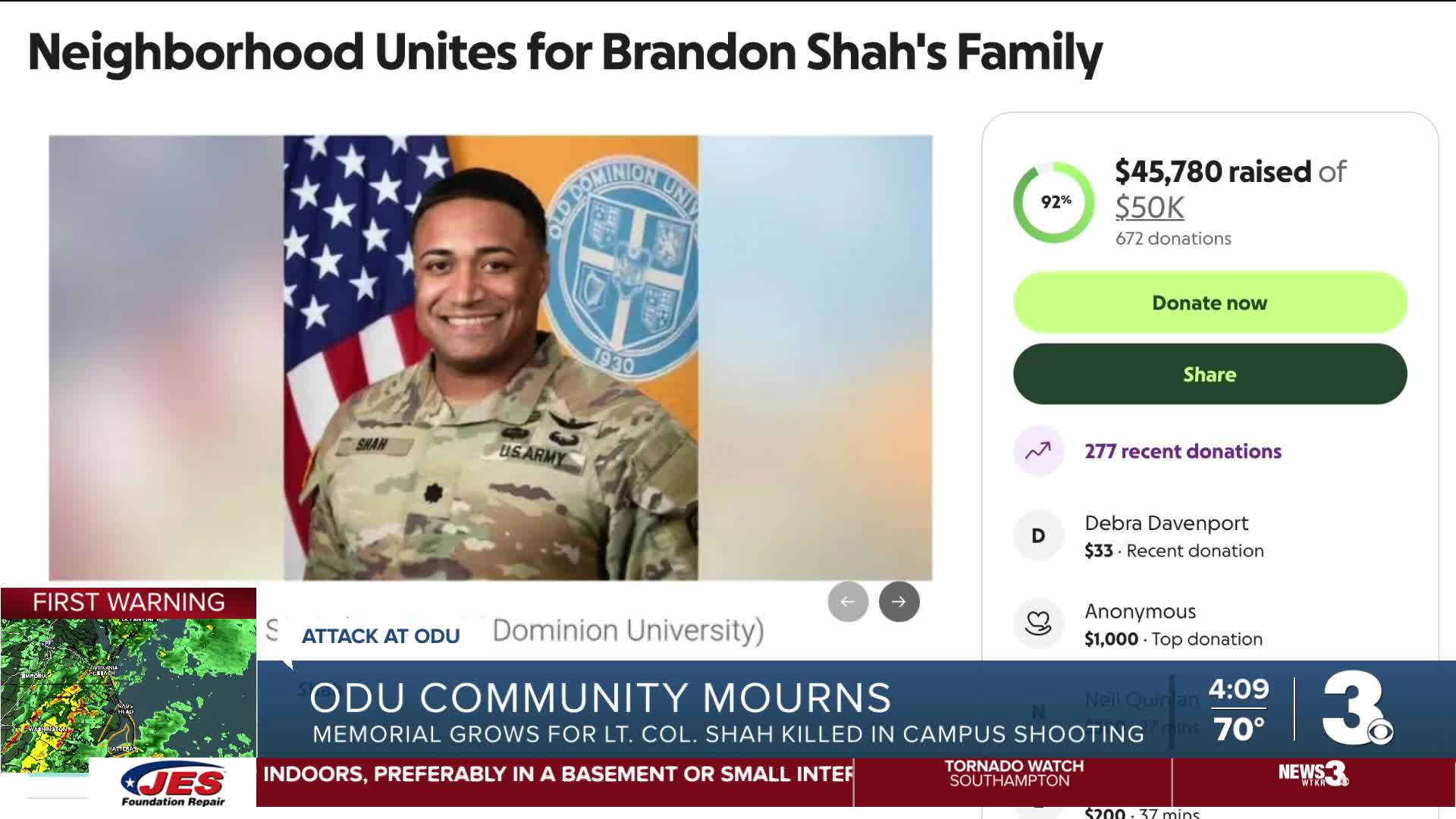 In Chesapeake, Lt. Col. Shah's neighbors neared a $50,000 fundraising goal to support his family, as of Monday afternoon, calling Shah "a cherished member of our neighborhood."
