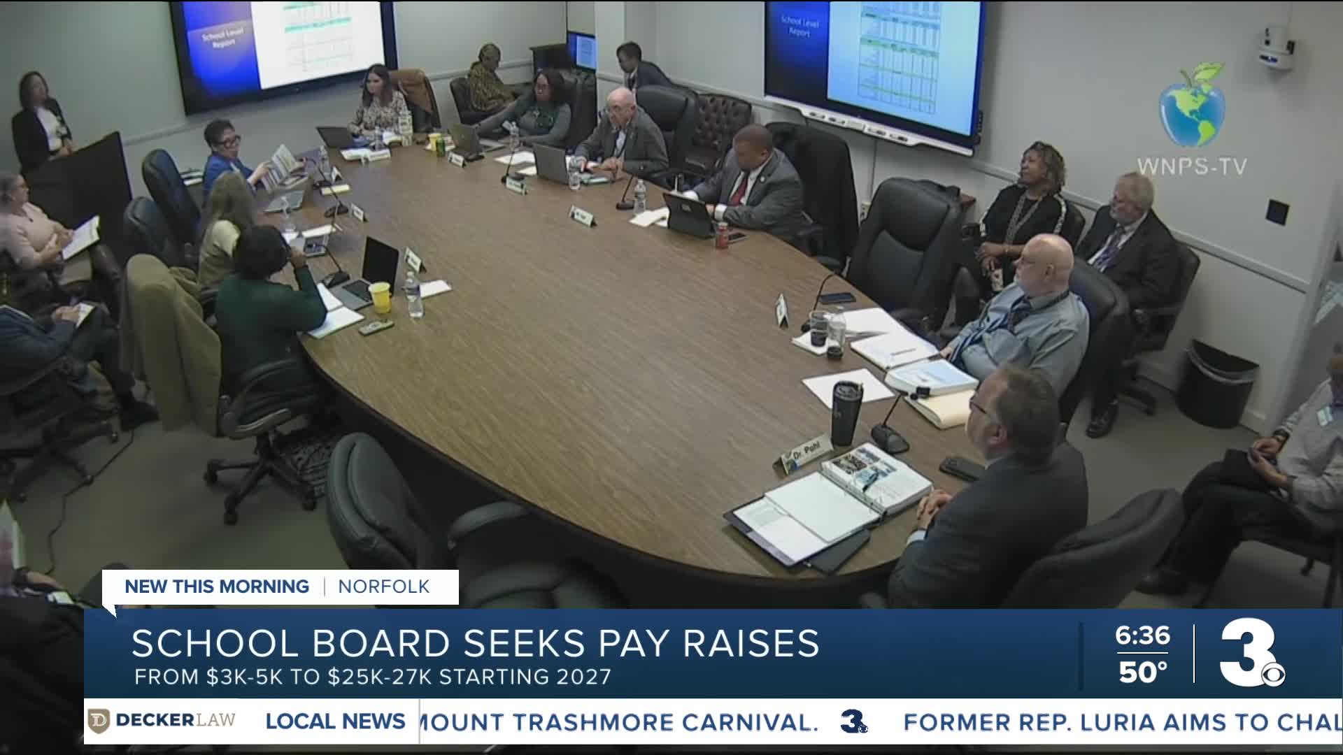NORFOLK, Va. — The Norfolk School Board is considering a proposed resolution that would significantly increase their pay starting in 2027.