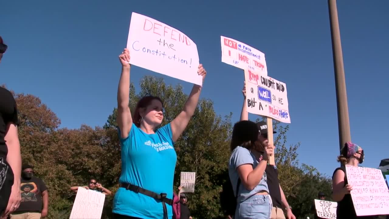 "Trying to advocate for better rights. The VA is being cut, and we're advocating for them," a protester said.