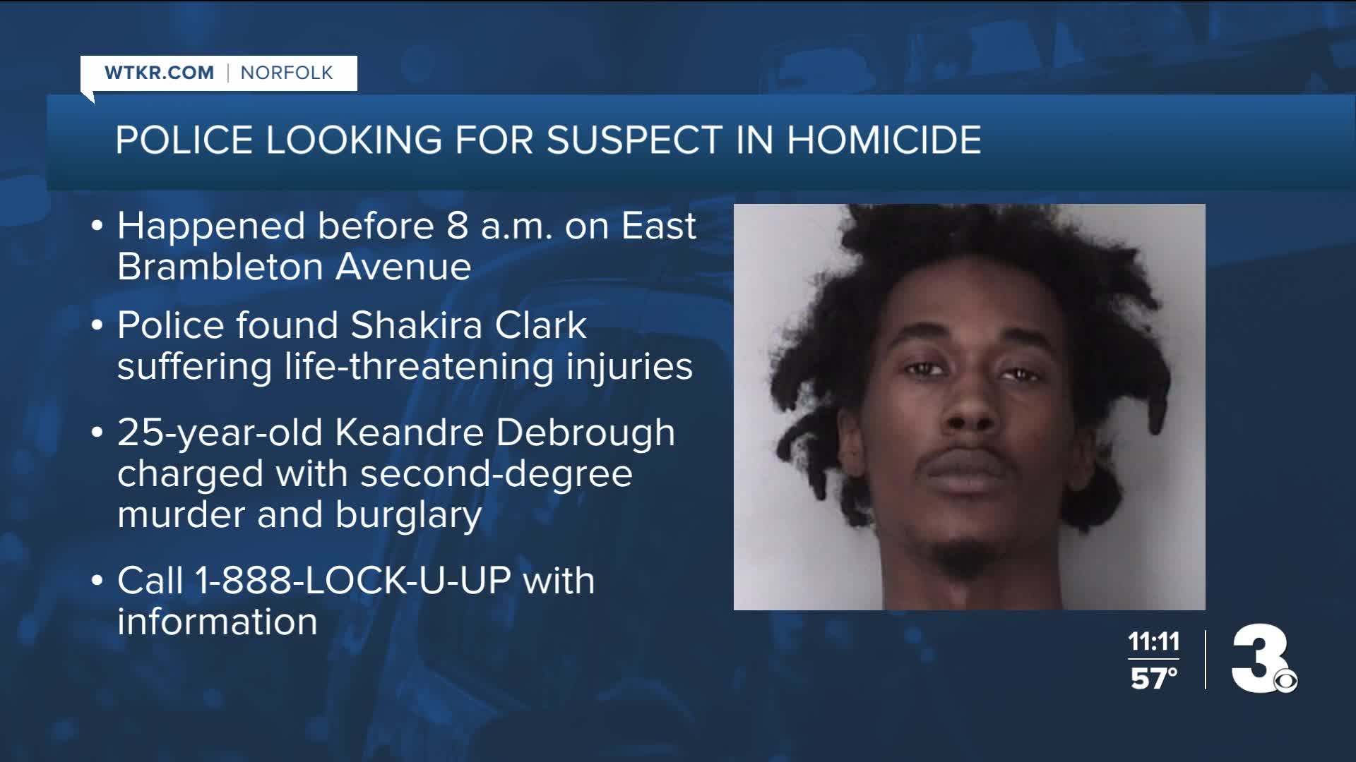 25-year-old Keandre Debrough has been charged with second-degree murder and burglary, according to Norfolk police.