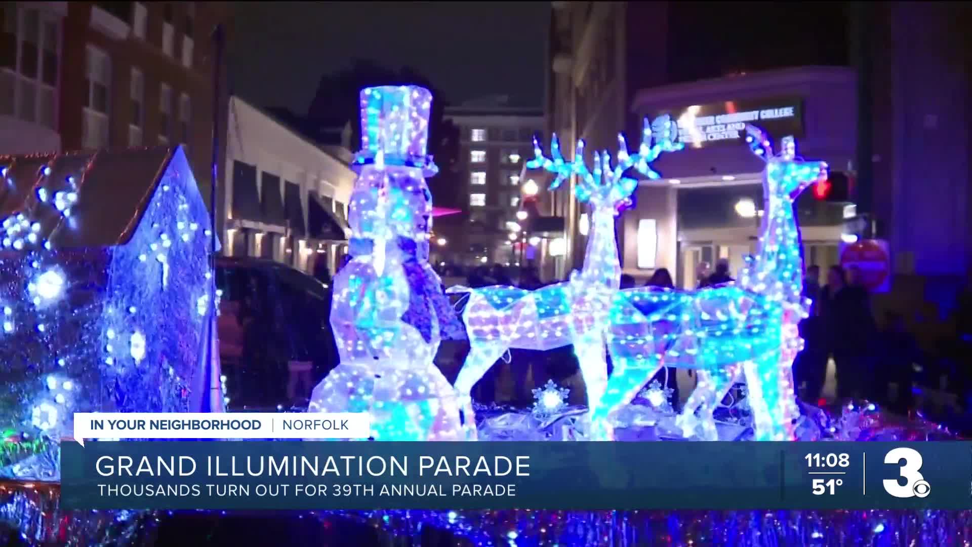 NORFOLK, Va. — Downtown Norfolk lit up Saturday night as thousands of people filled the streets for the 39th Grand Illumination Parade, one of the city’s largest and longest-running holiday traditions. City officials estimated that as many as 70,000 people were expected to attend this year’s event.