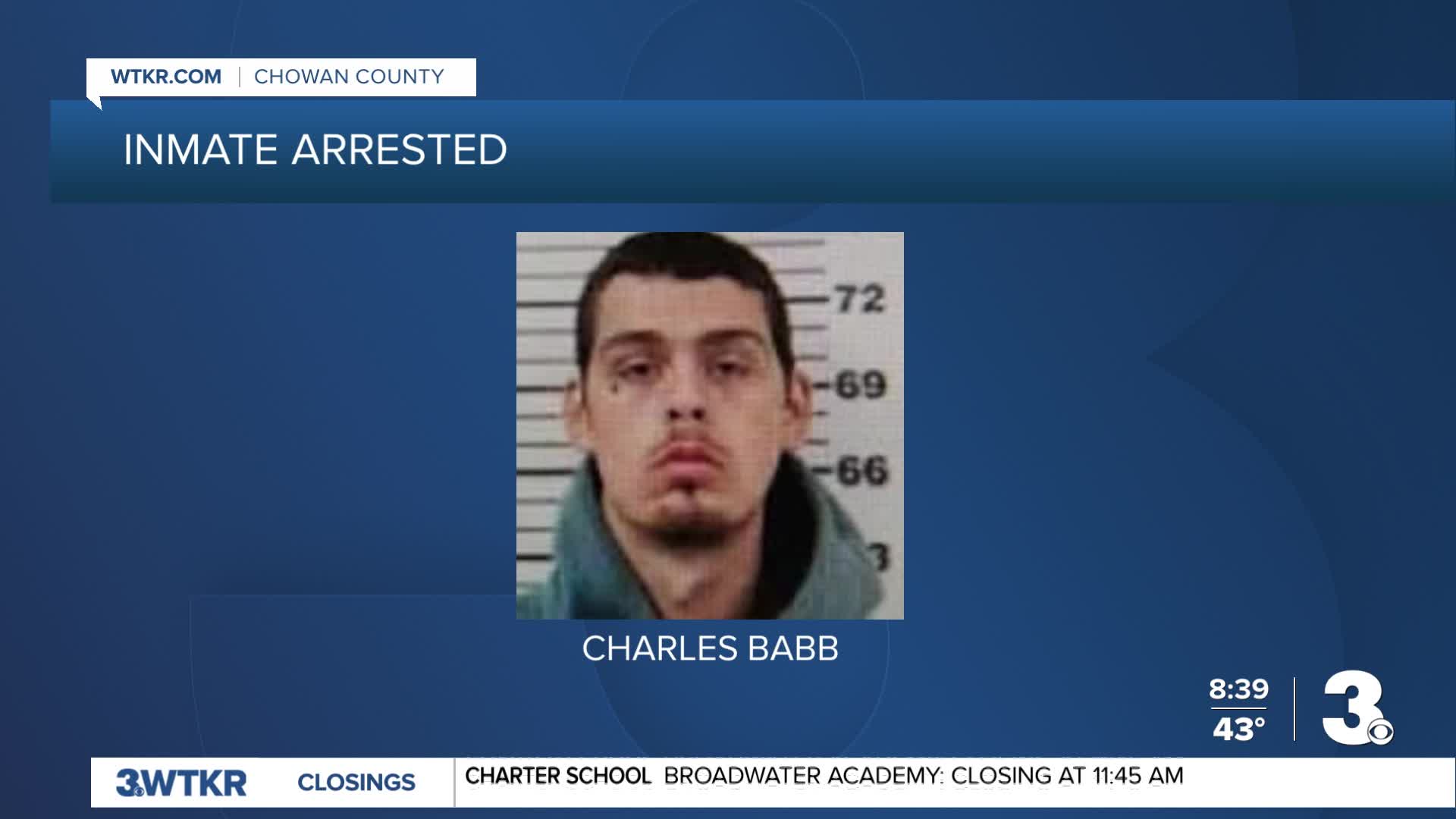 "Inmate Charles Edward Babb used a small hand-held edged weapon to force his way out of the jail and into the community," according to an update sent by the Chowan County Sheriff's Office.