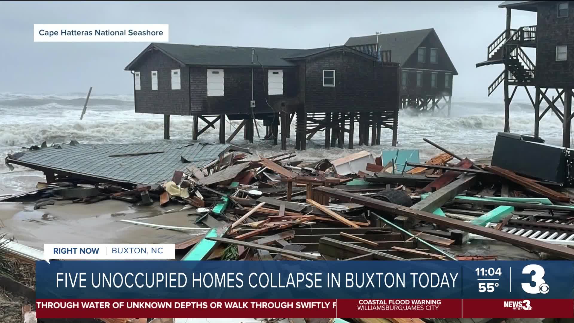 OUTER BANKS, N.C. — Five oceanfront houses in Buxton collapsed on Tuesday, bringing the total number of home collapses on Cape Hatteras National Seashore beaches since 2020 to 27.