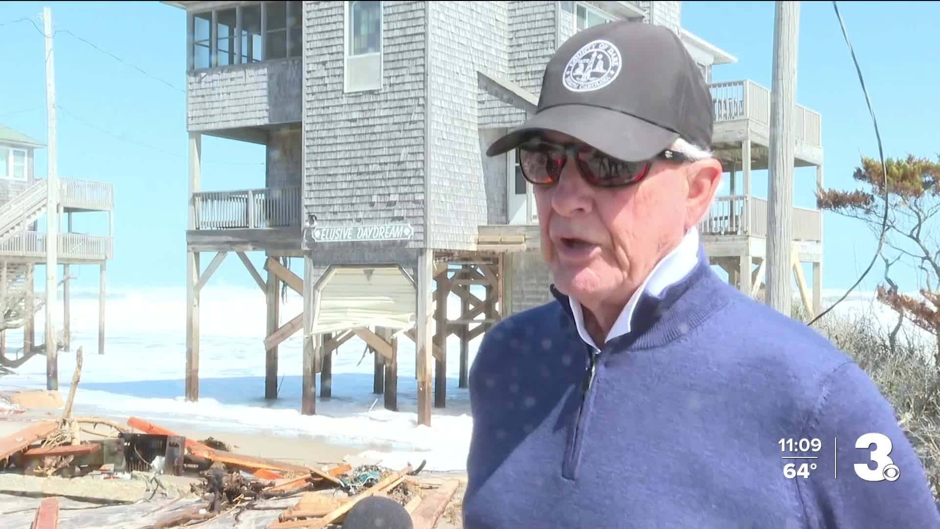 "It's certainly hard to see this happen, and it's not what we wanted to have happen, and I'm sure for the homeowners, it's got to be devastating. But again, all that we can do is what we can do. And we're moving just as quickly as we can to get some sand out here, to get a beach out here, to get a groin down here, to hold the sand, to do the things we've got to do to preserve the beach and maybe continue Buxton in the future, and hopefully this won't happen again," said Dare County manager Bobby Outten.