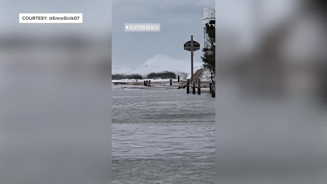 Video from the scene shows debris scattered along the shoreline after the structure gave way to powerful waves and high winds that reached 50 to 60 mph during the storm.