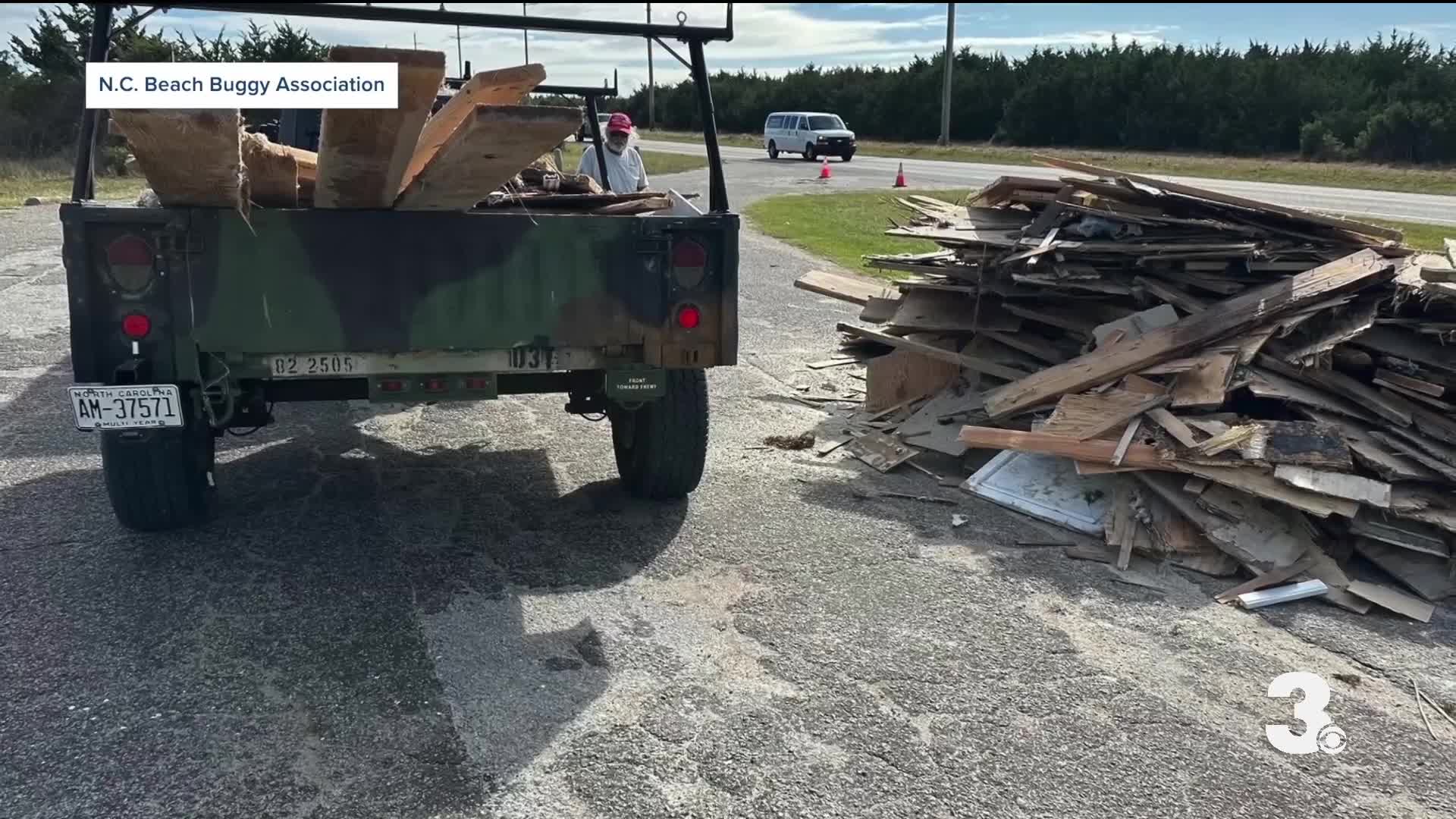 "We've had team members out there with chainsaws cutting eight-by-eights and six-by-sixes in half, loading them on trucks. Our organization probably put at least 15 to 20 trucks out on the beach, along with members to pick up the debris and clean the beaches," said Mike Regan, with the North Carolina Beach Buggy Association.