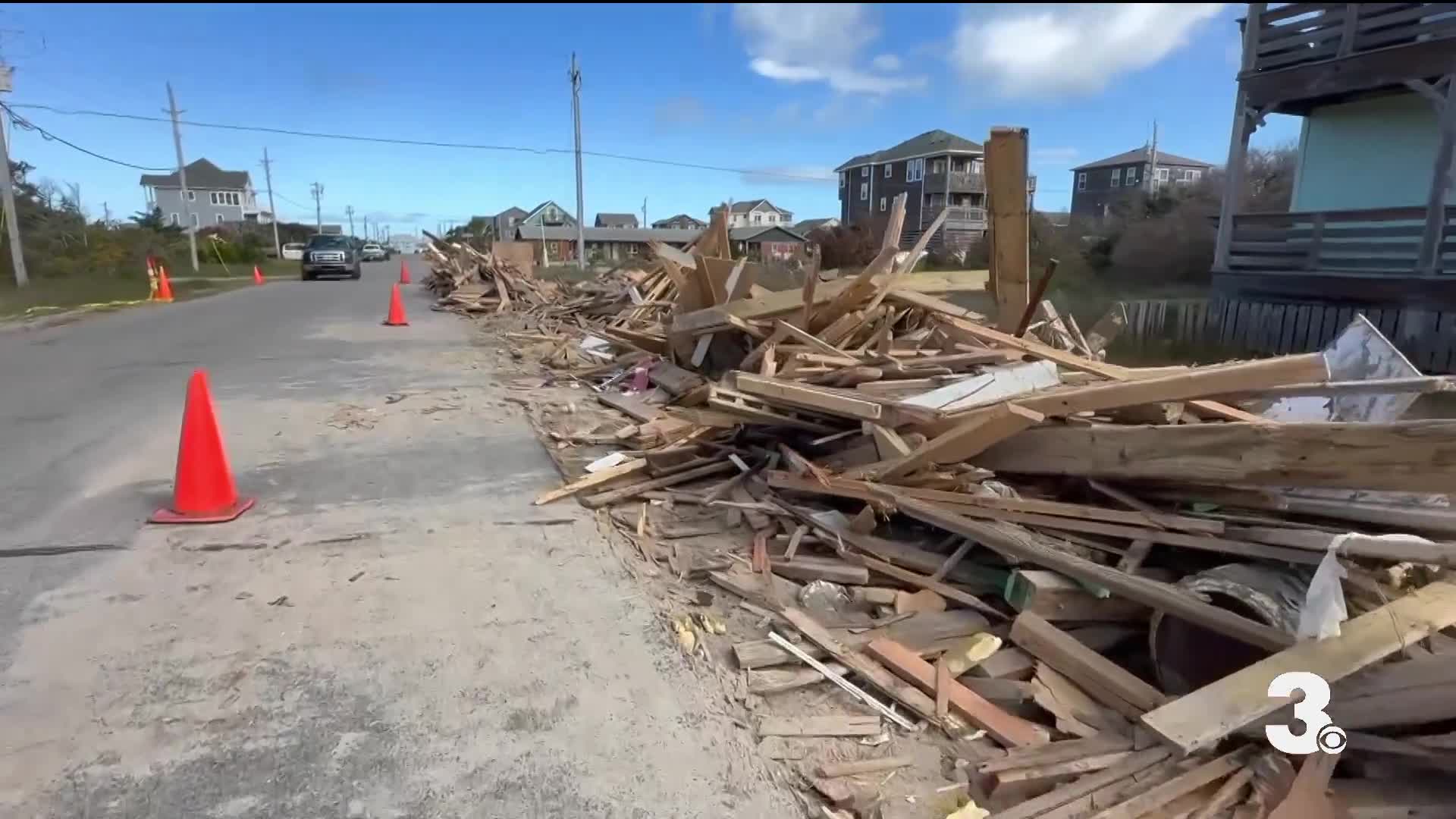 BUXTON, N.C. — Crews are hard at work cleaning up the eight homes in Buxton that collapsed last week, with a ninth collapsing in Rodanthe. But as the cleanup process is going on, there are more worries about the weather at the end of this week where more houses could potentially collapse.