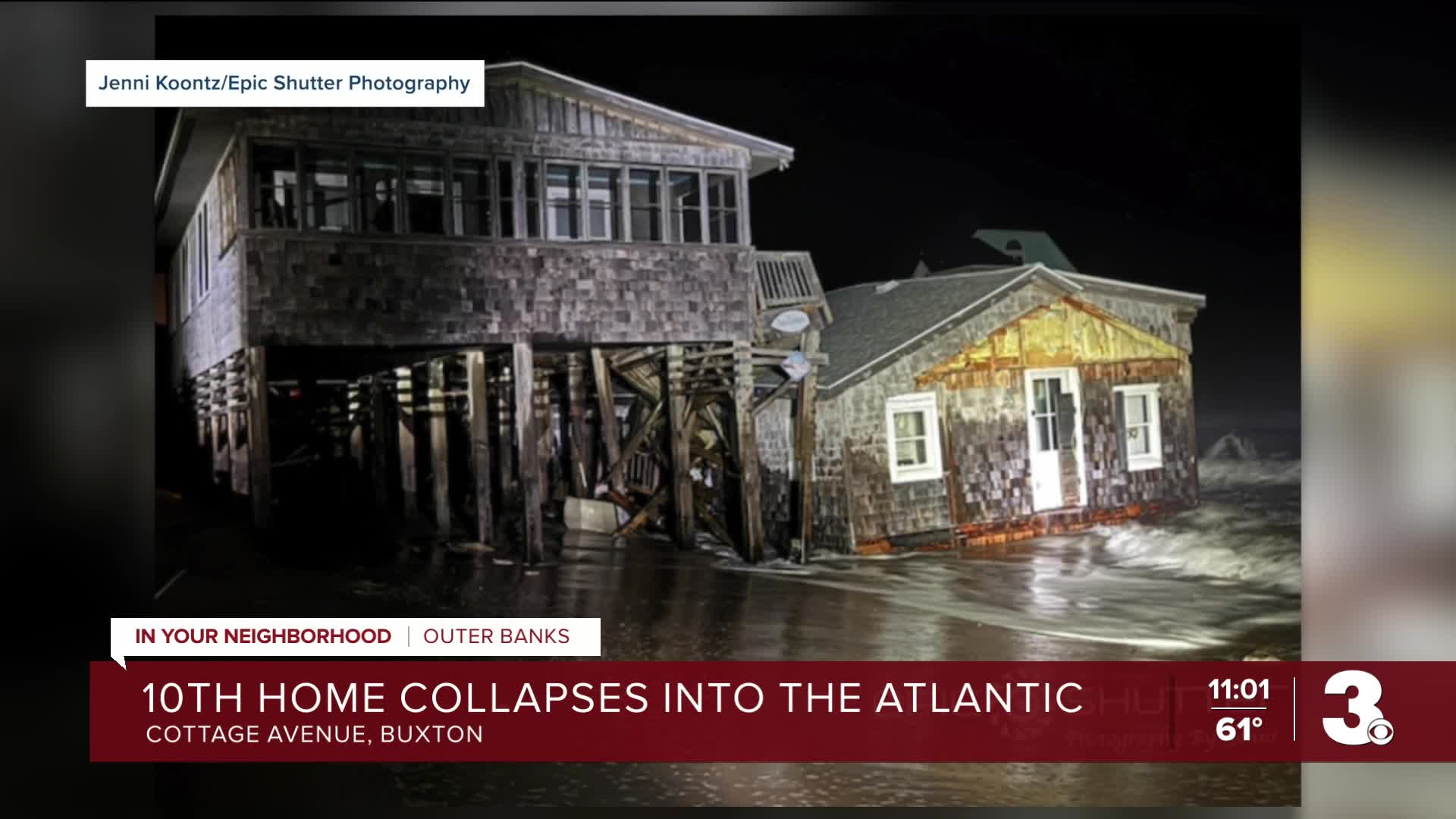 OUTER BANKS, N.C. — An oceanfront home in Buxton collapsed around 7:45 p.m. Saturday, marking the eleventh house to fall in the village since mid-September, according to the Cape Hatteras National Seashore.