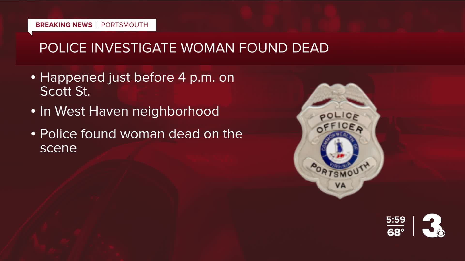 PORTSMOUTH, Va. — A death investigation is underway after a woman's body was discovered on Friday, according to Portsmouth police.