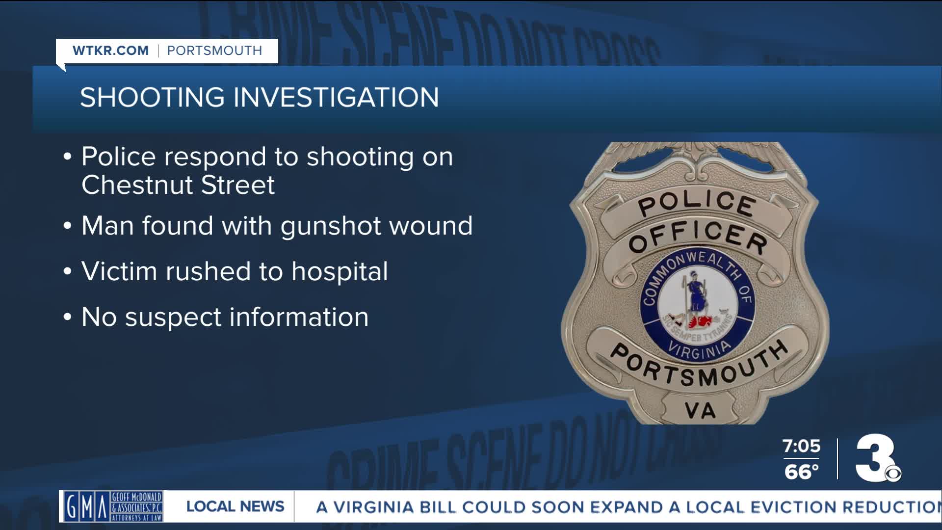 PORTSMOUTH, Va. — Portsmouth Police are investigating a shooting in the Prentis Park neighborhood that left an adult male injured.