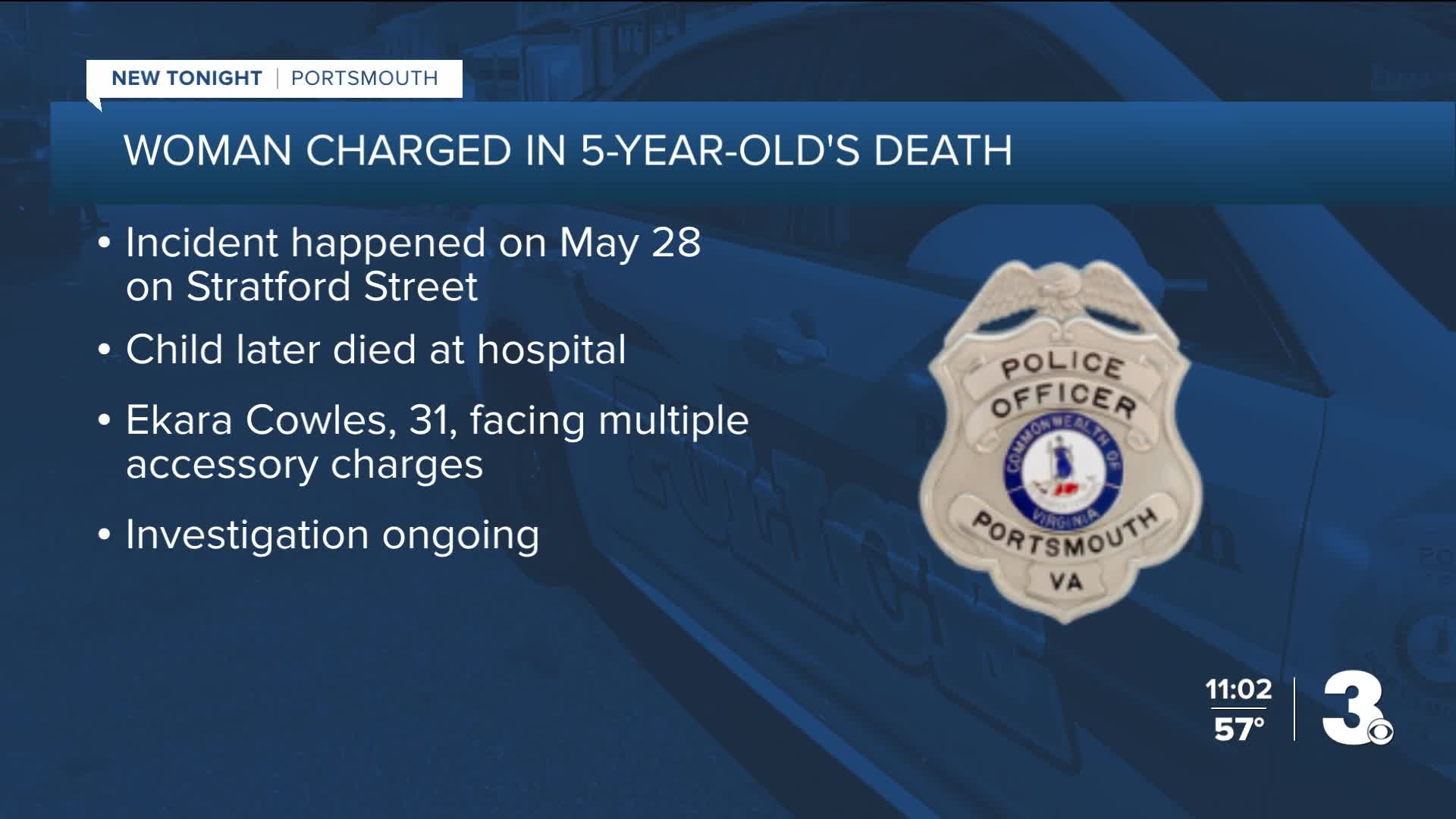 PORTSMOUTH, Va. — Portsmouth police say a 31-year-old woman has been charged in connection with the death of a 5-year-old child earlier this year.