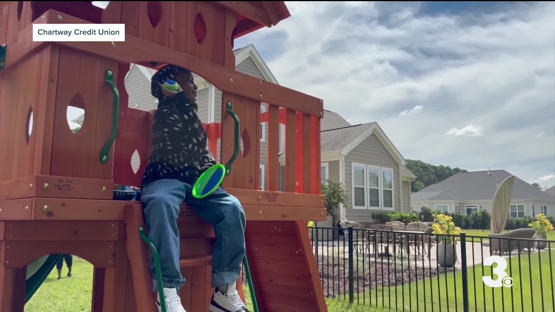 L.J., who is undergoing treatment for leukemia, was gifted a new playset through a partnership between the Roc Solid Foundation and the Chartway Promise Foundation. Volunteers built the playground in his yard so he can enjoy safe outdoor play while receiving treatment.