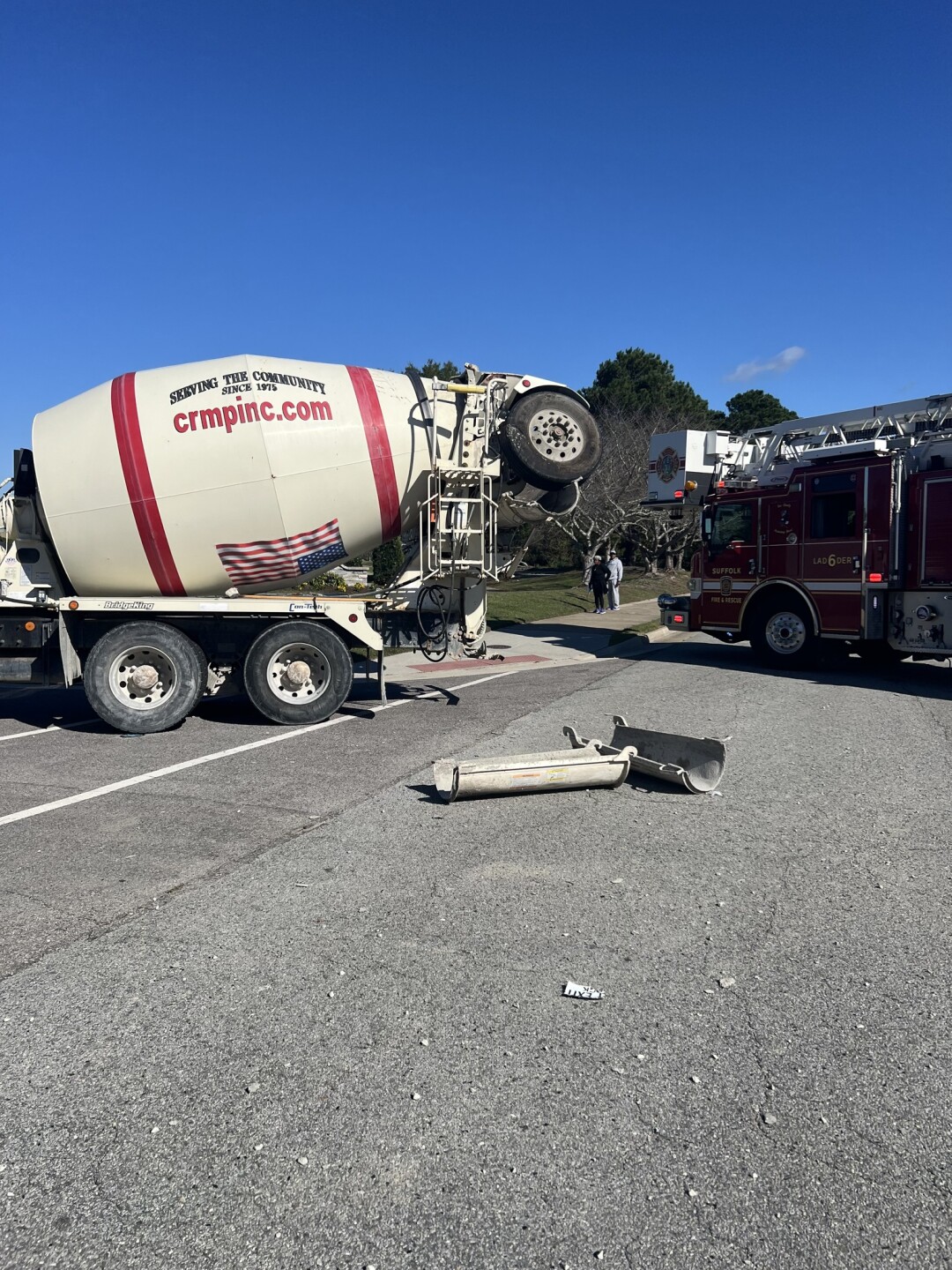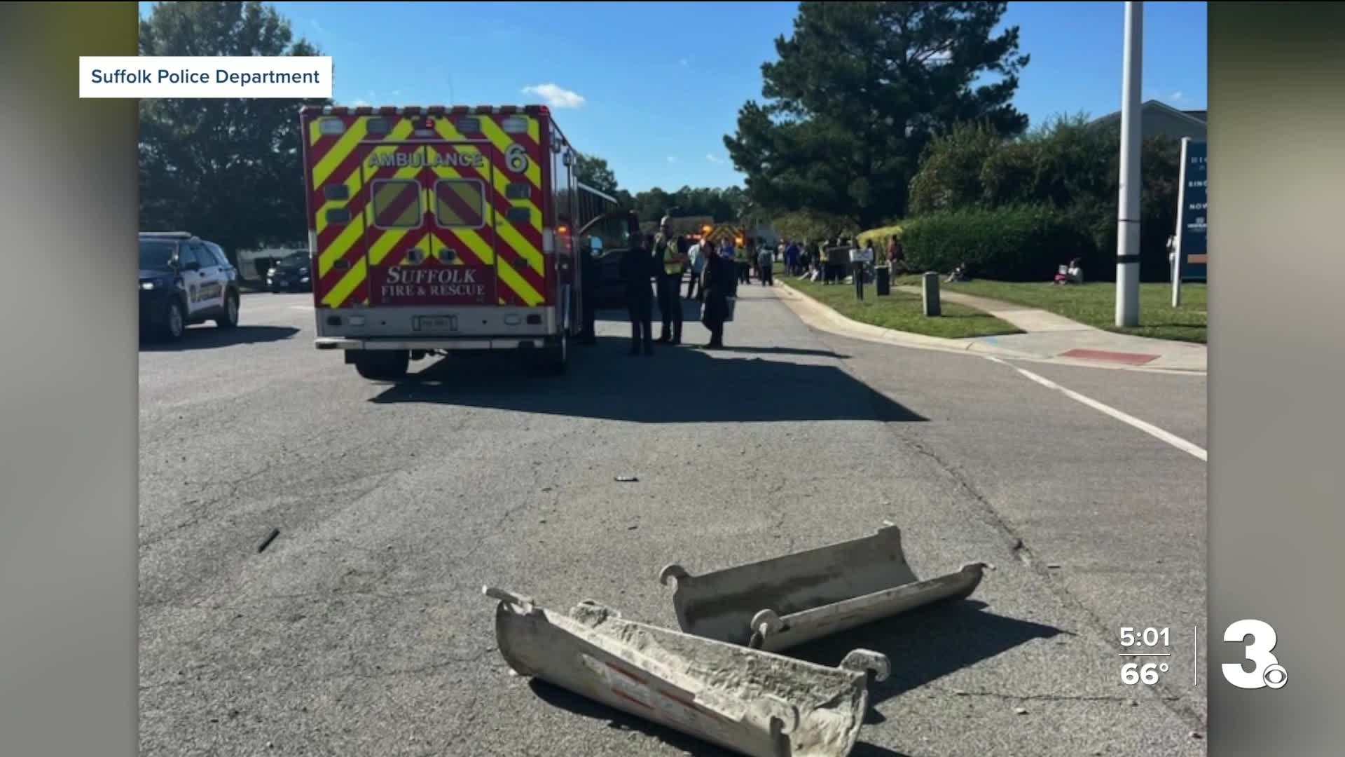 SUFFOLK, Va. — Four kids were injured when a cement truck crashed into a King's Fork Middle School bus in Suffolk Wednesday afternoon, according to a post from the police department on Facebook.