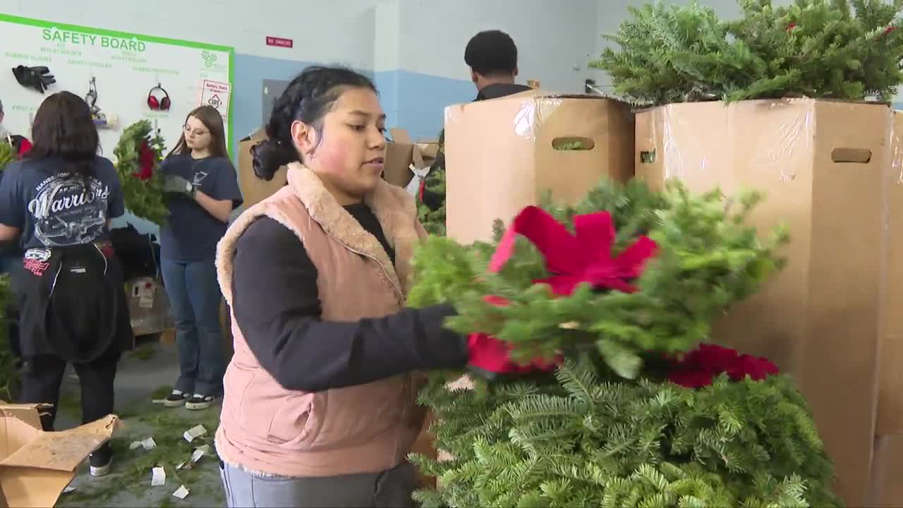 "I've been doing the wreaths and unpacking and I came over here because we were done unpacking the wreaths and I did boxes and cut them up," said a Grassfield freshman student.