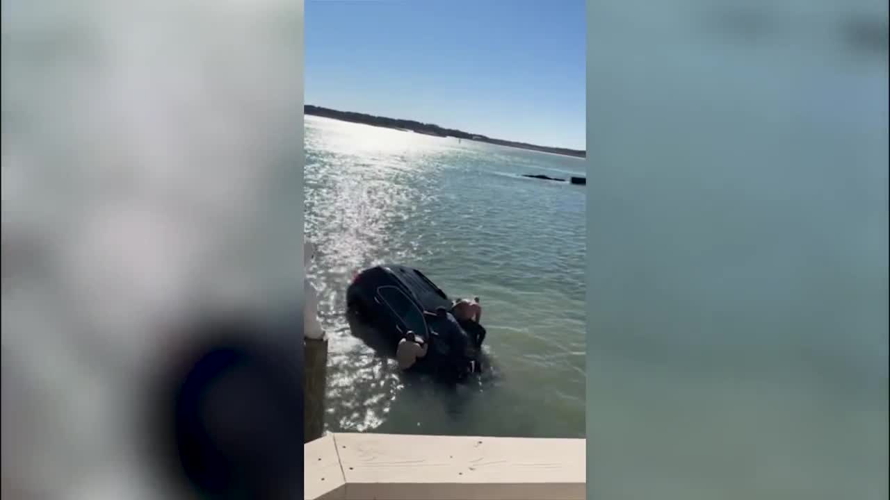 Watch: Video shows daring rescue after car goes into water at Back Deck, Bubba's